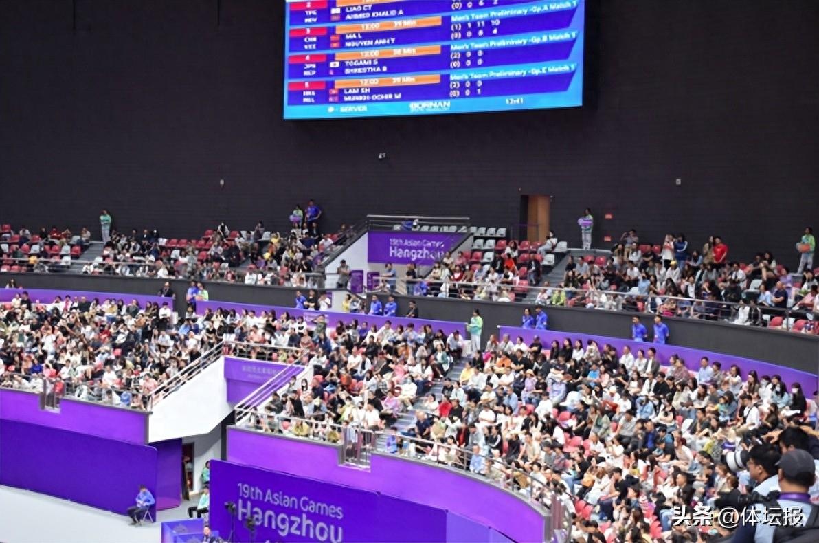 雖然是工作日,但早上8點剛過,杭州運河亞運公園體育館周圍就“湧”入大波市民,隨着比賽開始,場館內的觀衆席位也基本被坐滿。