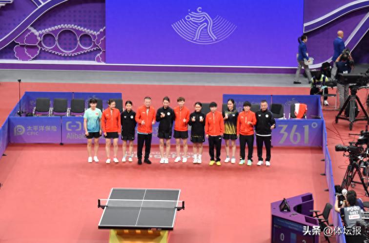 率先進行的女團比賽,中國隊對陣中國澳門選手。代表中國隊出戰的陳夢、王曼昱、陳幸同均以3:0戰勝對手,整場比賽僅用時50分鐘,姑娘們以一場“光速”勝利完成自己的杭州亞運會首秀。