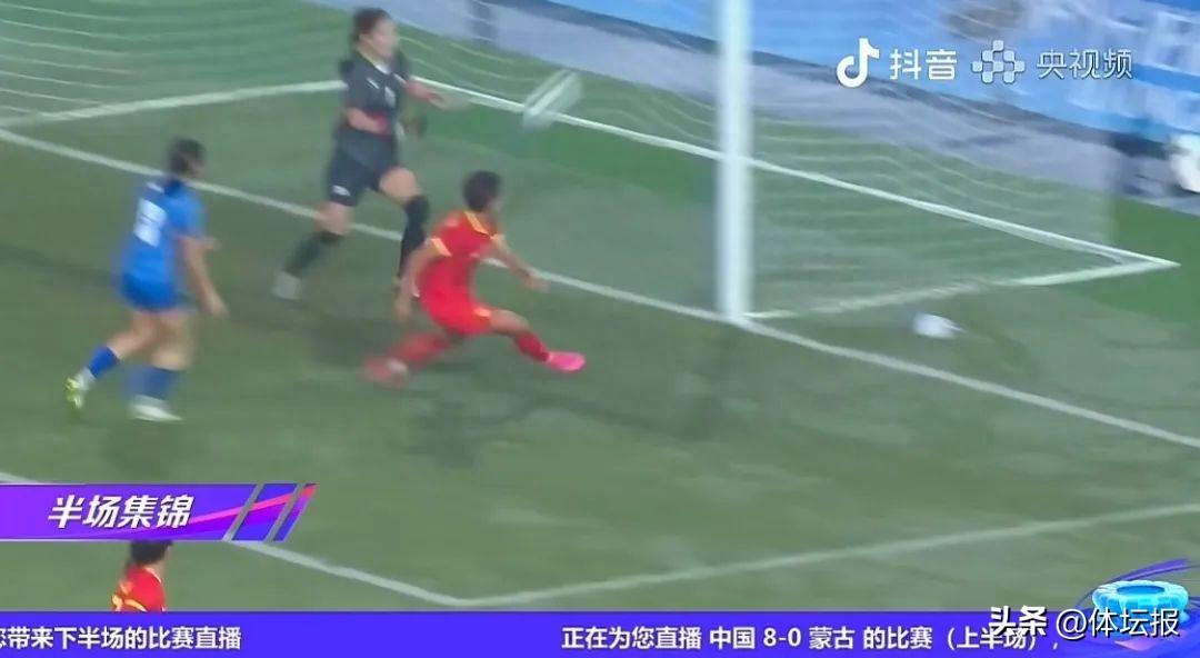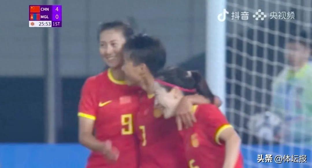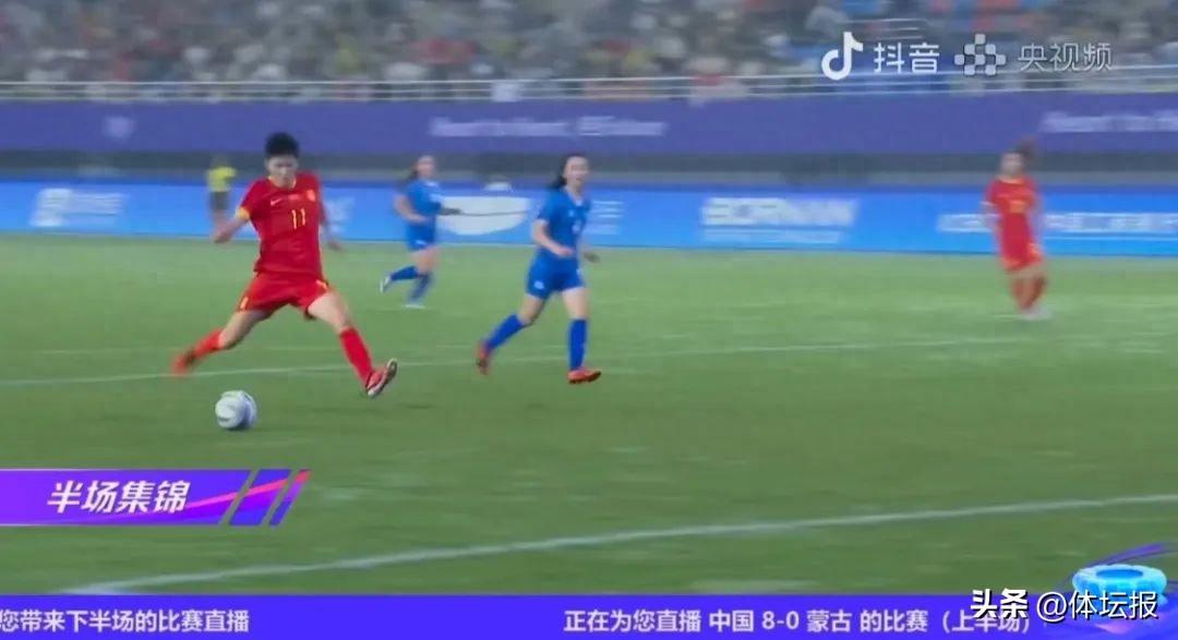 上半場,比賽開始後僅兩分鐘,王霜一記勁射將對方球門攻破,女足姑娘展現出了對本場比賽絕對的統治力。隨後,女足姑娘一路勢如破竹,如連珠炮般持續得分,蒙古隊雖將所有隊員收縮至自家半場,但對於中國隊的攻勢依然不可阻擋。整個上半場,中國女足取得了8粒進球,隊長王霜更是獲得“大四喜”,而王珊珊也梅開二度。