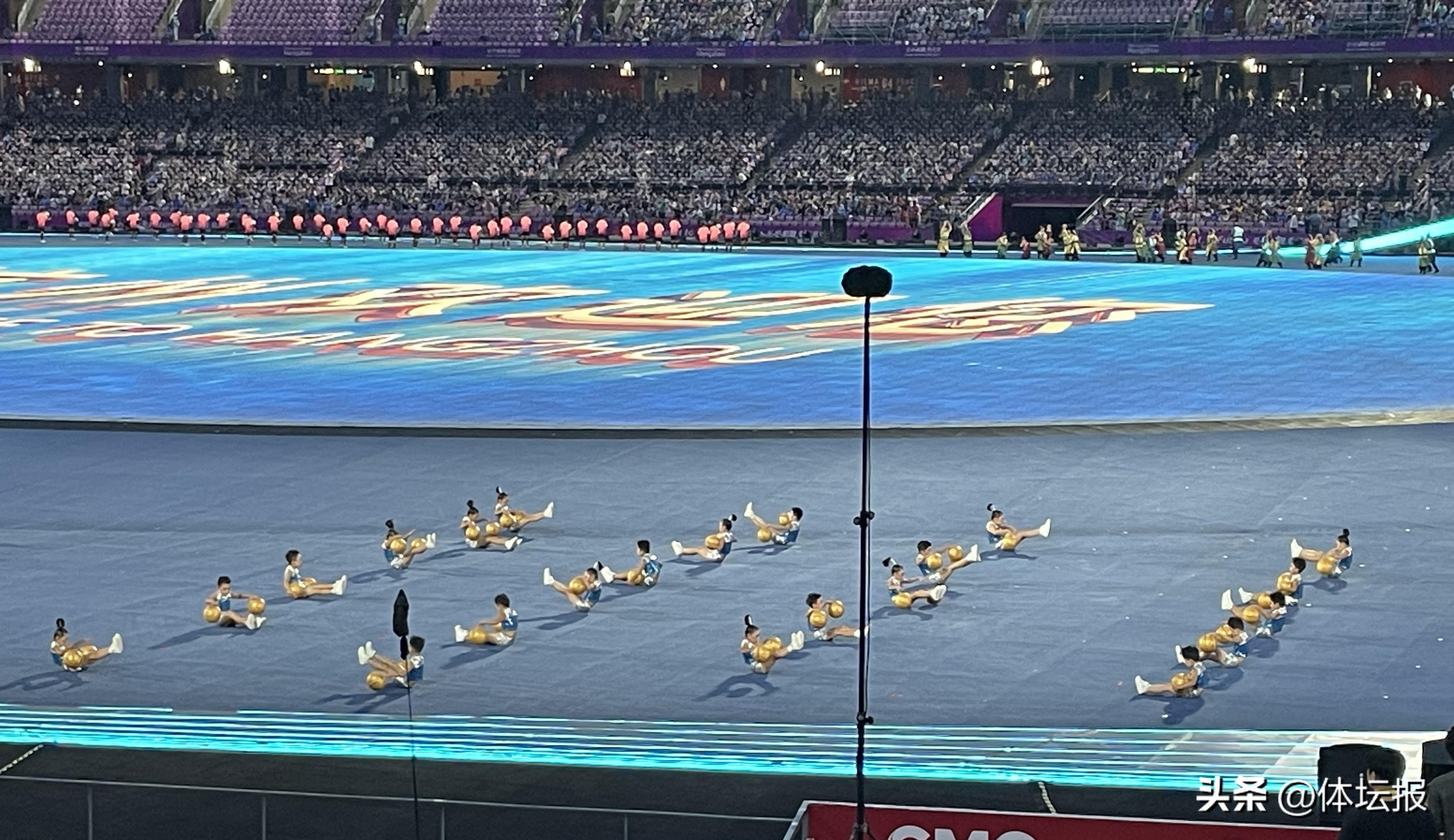 亞運會開幕式前夕, 32位籃球小將每天都在抓緊時間進行練習。他們白天上學,晚上聚在一起反覆鞏固表演動作和走位路線。在暖場節目中,孩子們出現在體育秀的單元,身着統一服裝,通過流暢自然的拍球、傳球等籃球基礎動作結合動感激情的音樂和靈活變換的隊形,展現了新時代兒童積極向上,團結協作的精神風貌。