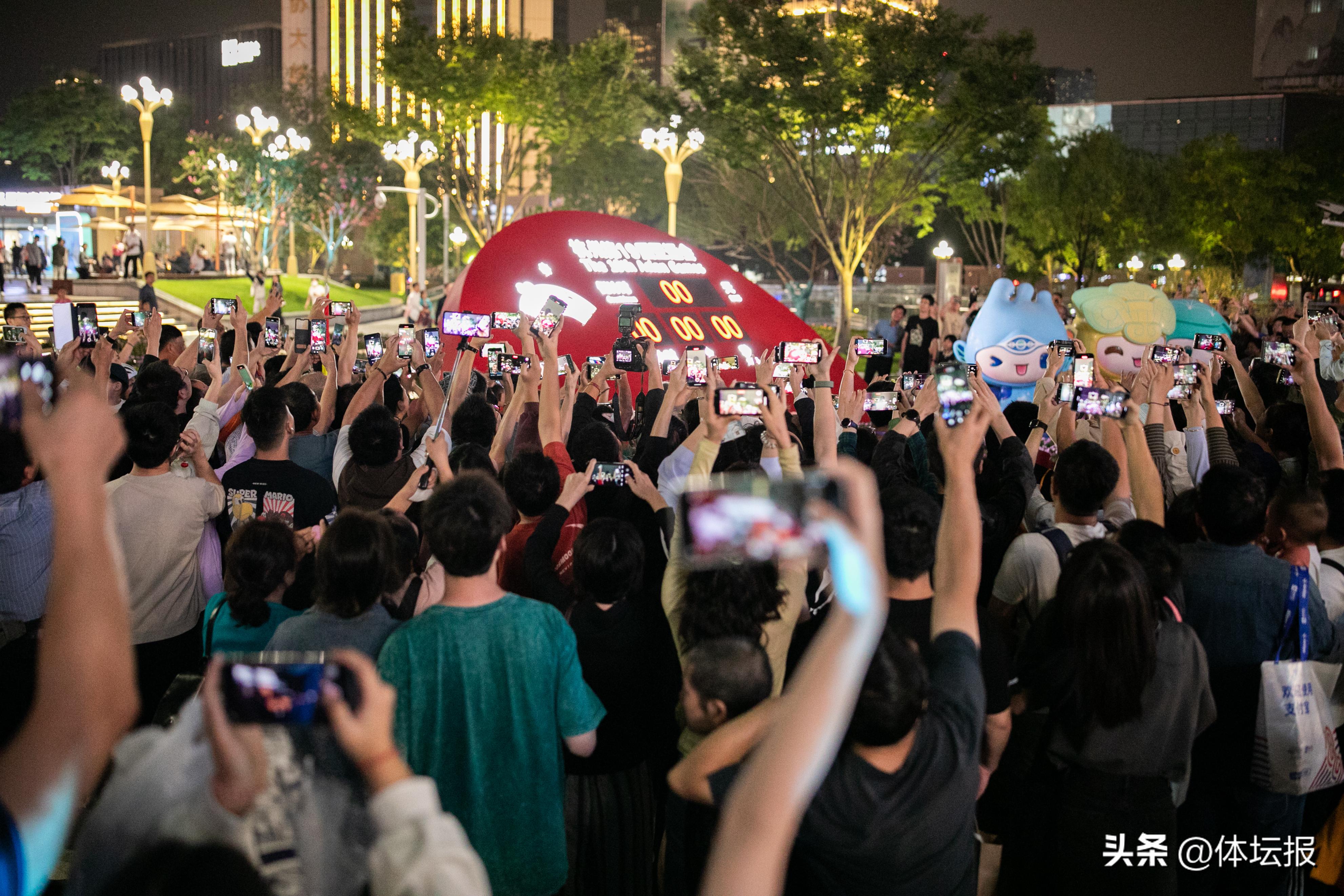 時間距離晚上8點越來越近,來到倒計時裝置前的市民越來越多。當倒計時牌上的數字最終變成“0天0時0分0秒”,人羣中爆發出陣陣發自肺腑的歡呼,“亞運開幕啦!”