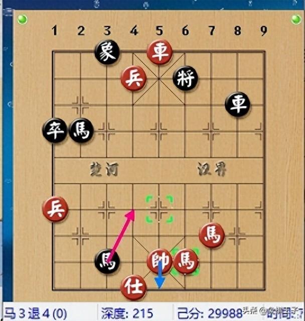 第14回合,黑棋求勝心切,眼裏只有勝利,忽的馬7退8,回馬送給紅車喫,黑方這葫蘆裏賣的什麼藥,孟繁睿仔細思索,發覺是白送。