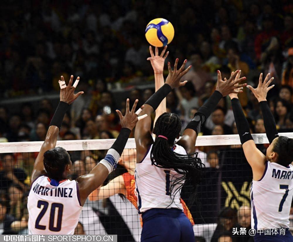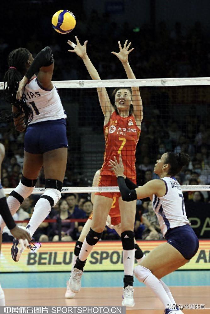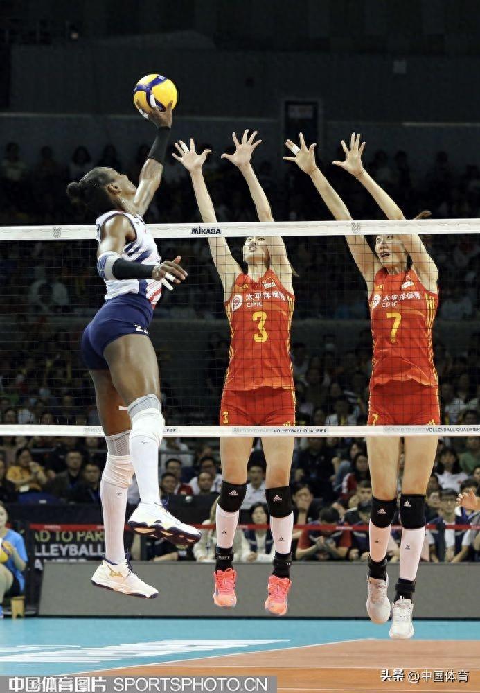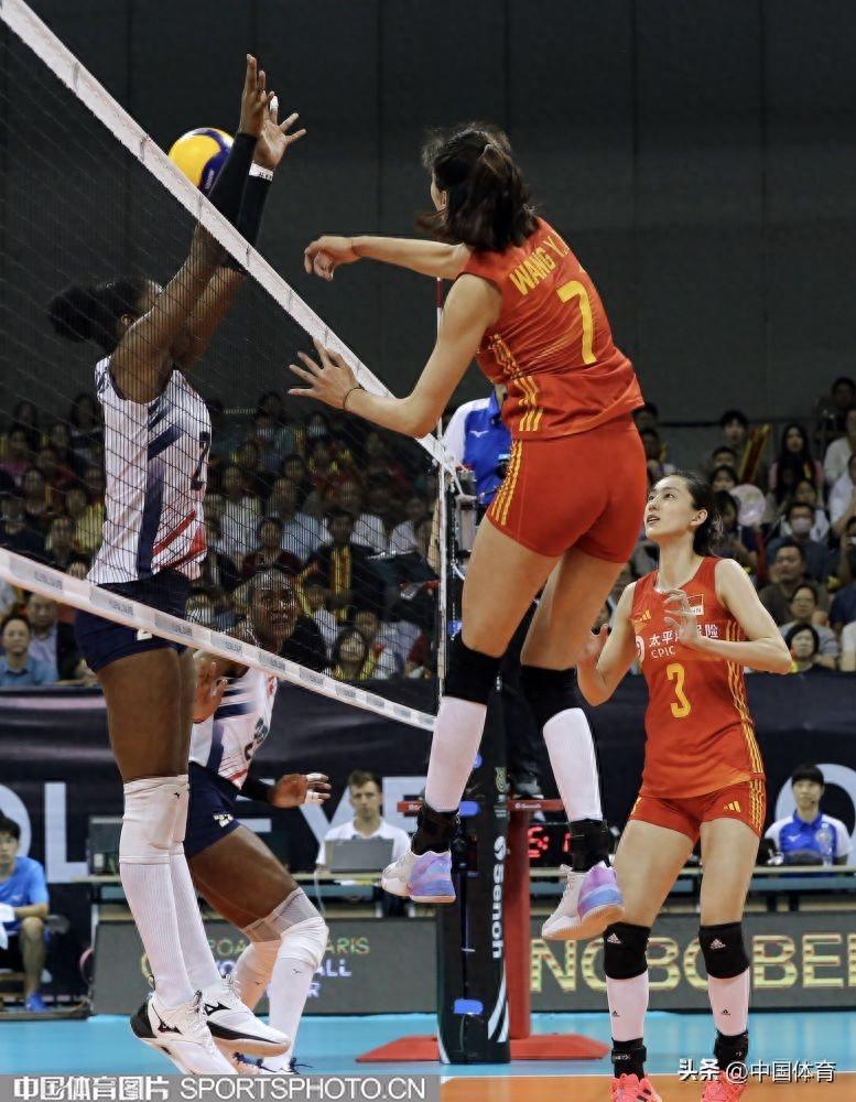 中國體育訊 9月23日,巴黎奧運會女子排球資格賽A組比賽在寧波北侖進入第六日的爭奪,中國隊1比3不敵多米尼加隊。(中國體育圖片 劉亞茹 攝)王媛媛扣球王媛媛攔網刁琳宇和王媛媛(右)雙人攔網龔翔宇起球多米尼加隊攔網王雲蕗起球