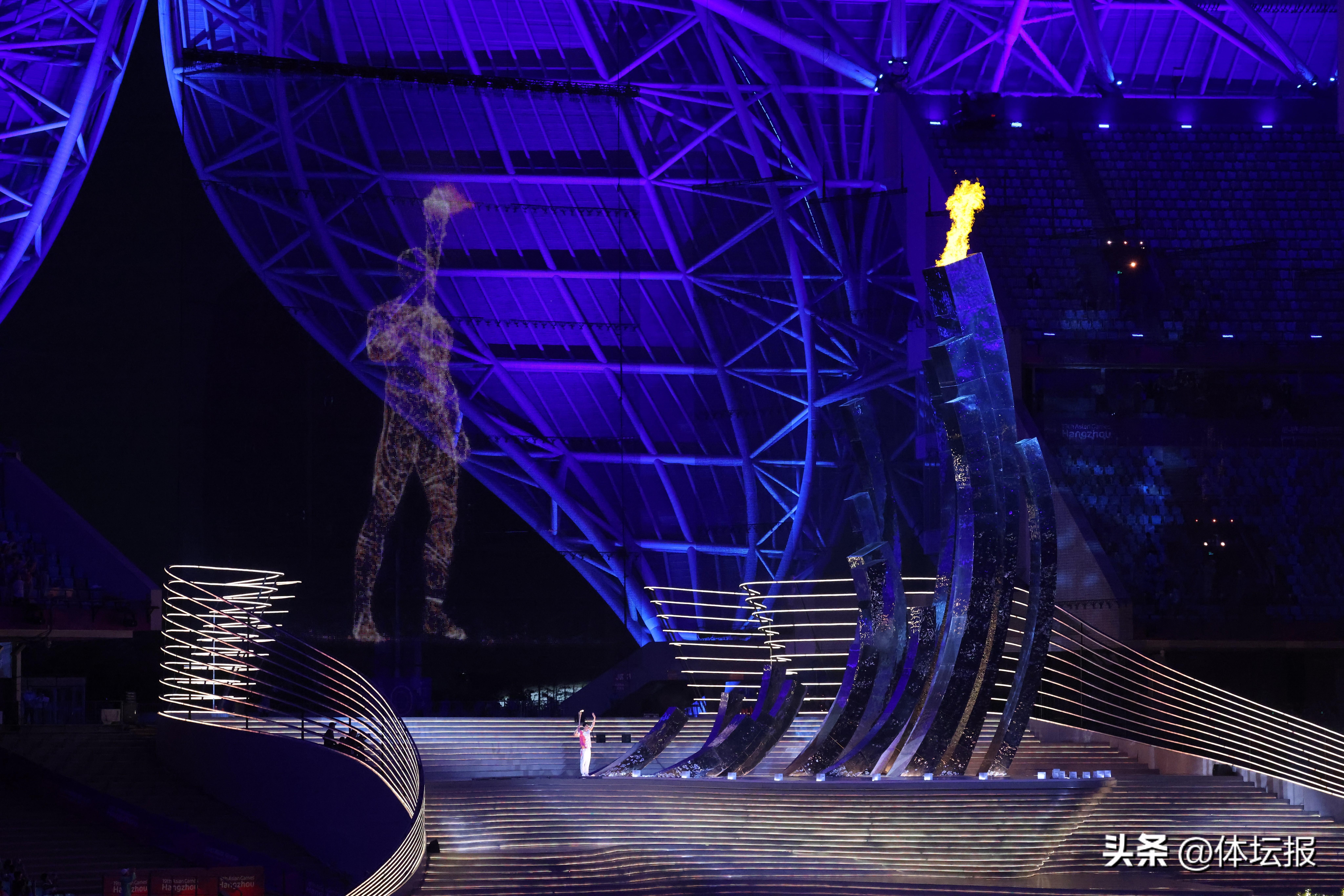 主火炬點燃環節,超過1億的“數字火炬手”將匯聚到錢塘江上,形成一個具象的數字火炬手,從錢塘江踏着浪花一步步來到“大蓮花”(亞運會主體育場杭州奧體中心)上空,和線下的六棒火炬手共同點燃主火炬。這是亞運史上首個“數實融合”點火儀式,向全球觀衆發出“共築未來,點燃希望之火”的邀請,營造“世界共此時”的和美畫卷。