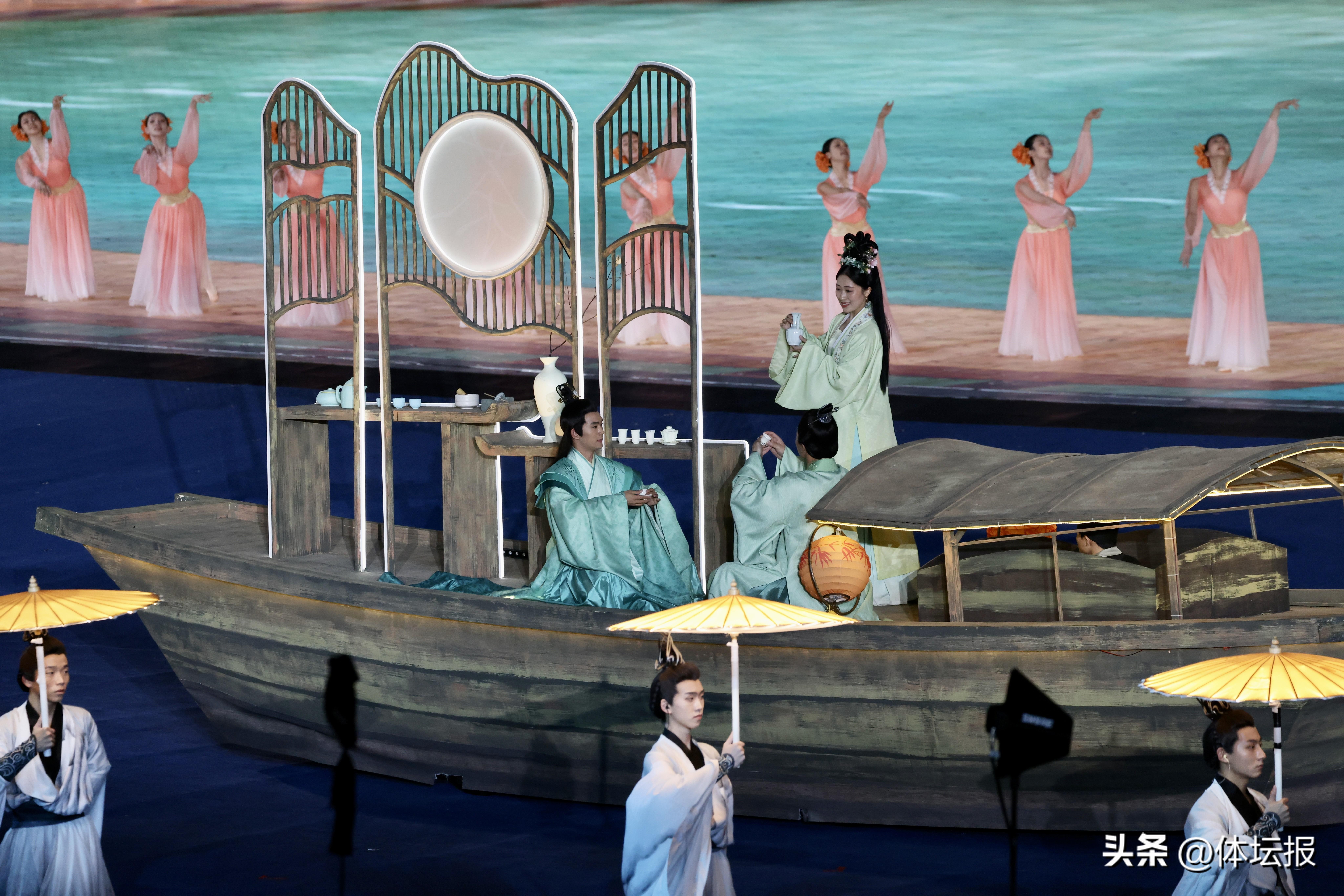 夜幕之下,杭州奧體中心主體育場——“大蓮花”華燈璀璨、流光溢彩。從行進中的千里江山、氣勢磅礴的錢塘潮湧,到綿延不絕的綠水青山、萬人合唱時的萬家燈火……整場開幕式,通過地屏、立體透視網幕的配合,加上裸眼3D、AR+AI等先進技術,將一系列體現浙江人文、歷史和發展的元素“搬”到舞臺之上。這些都是自然、科技、體育之潮的體現,杭州亞運會開幕式將“潮”的概念貫徹到底。