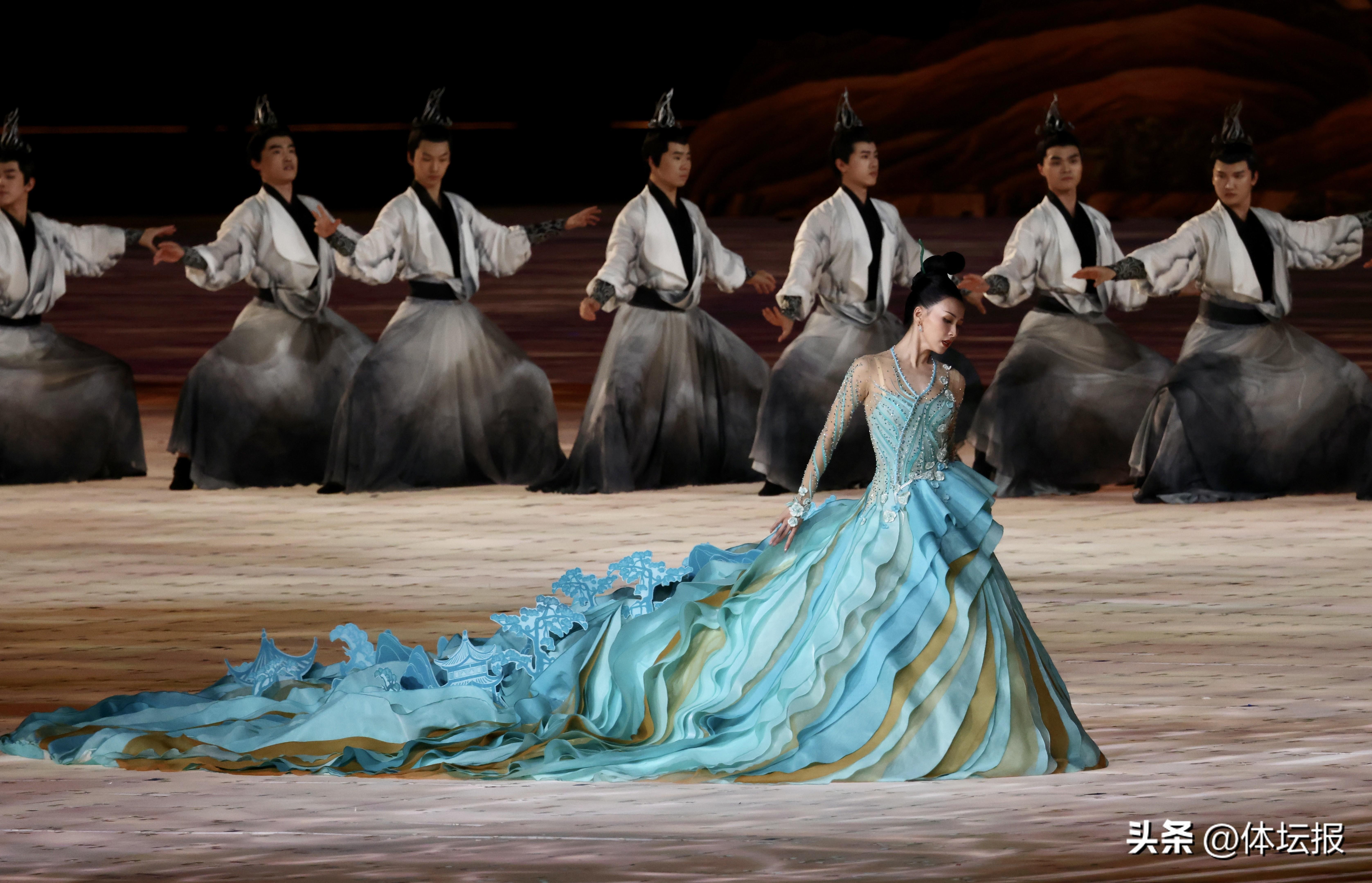 本屆亞運會開幕式首次在大型運動場空間中使用雙3D威亞技術,實現演員與錢塘潮湧的及時互動。
