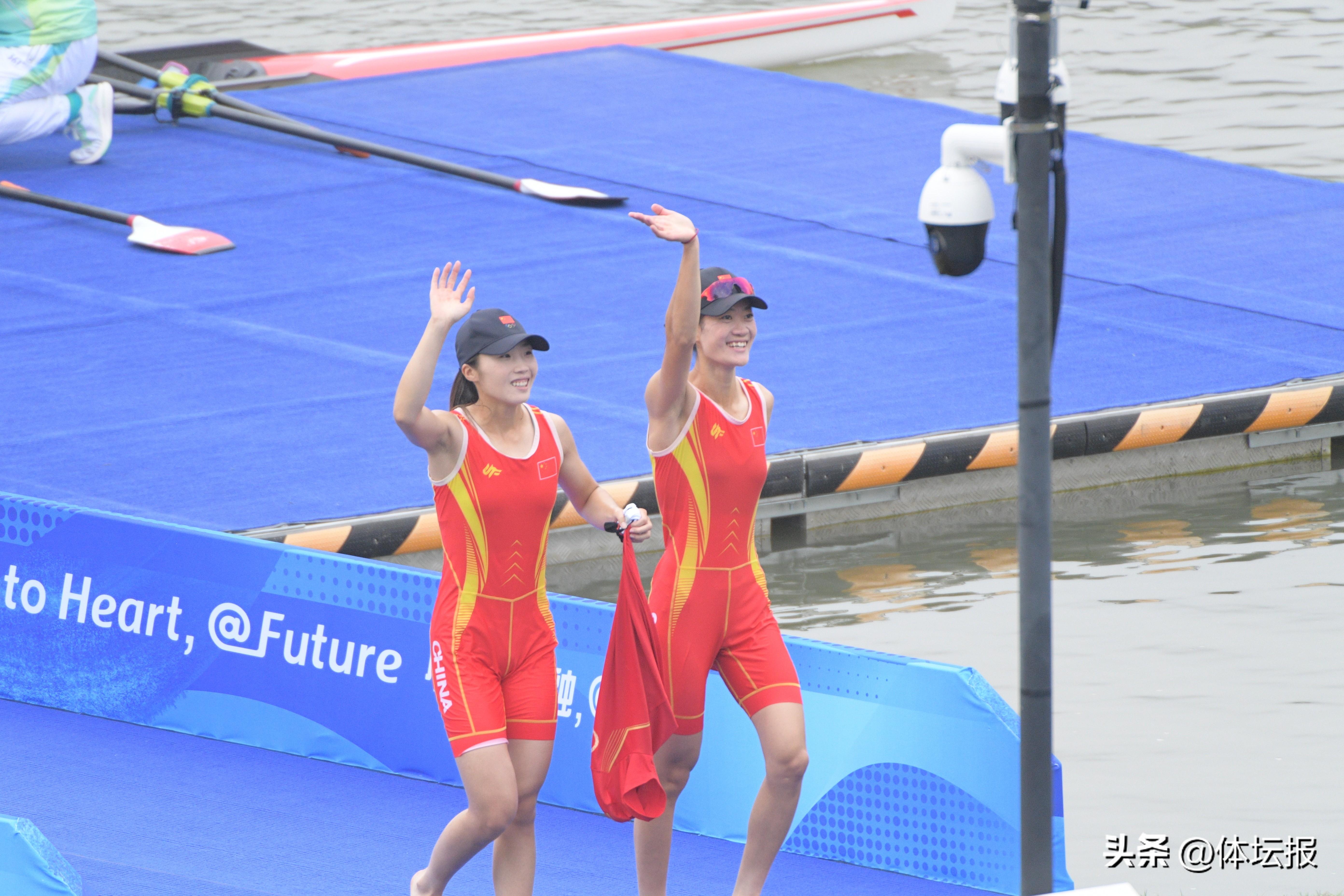 首項比賽即上演奪金大戰。在激烈的比拼中,浙江姑娘鄒佳琪與廣東搭檔邱秀萍,以絕對優勢奪得賽艇女子輕量級雙人雙槳項目金牌。這既是杭州亞運會首金、中國體育代表團首金,也是浙江與廣東共同的首金。