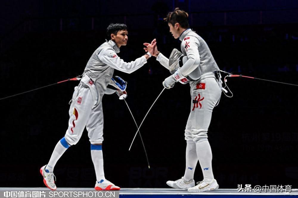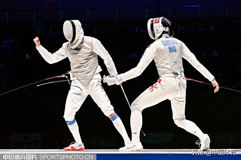 中國體育訊 9月24日晚, 杭州亞運會男子個人花劍決賽在杭州電子科技大學體育館舉行。中國香港選手張家朗以15比2戰勝中國選手陳海威獲得金牌,陳海威收穫銀牌。(中國體育圖片 白宇 攝)陳海威(左)與張家朗在比賽中陳海威(左)與張家朗在比賽中陳海威在比賽中陳海威(左)與張家朗在比賽中陳海威(左)與張家朗在比賽中陳海威(左)與張家朗在比賽中陳海威(左)與張家朗在比賽中陳海威(左)與張家朗在比賽中陳海威(左)與張家朗擊掌張家朗慶祝摘金