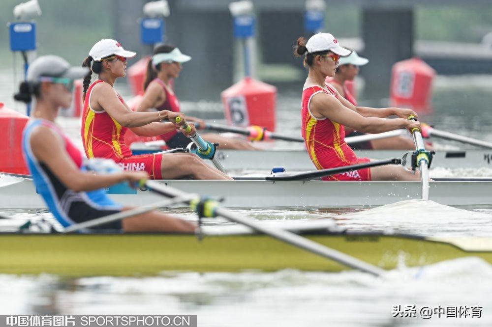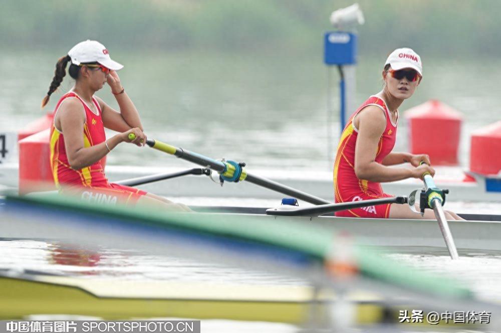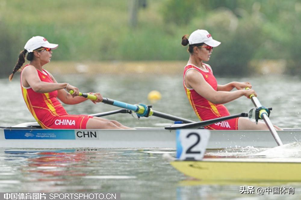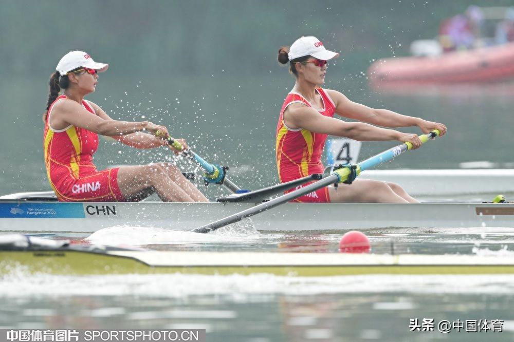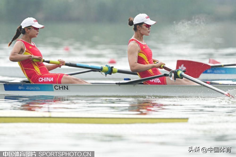 中國體育訊 9月25日,在杭州亞運會賽艇女子雙人單槳無舵手決賽中,中國組合王婷婷/張旋以7分32秒22摘金,中國香港組合張海琳/梁瓊允以7分42秒00獲得銀牌,韓國組合排名第三位。圖爲王婷婷/張旋在比賽中。(中國體育圖片 倪敏哲 攝)