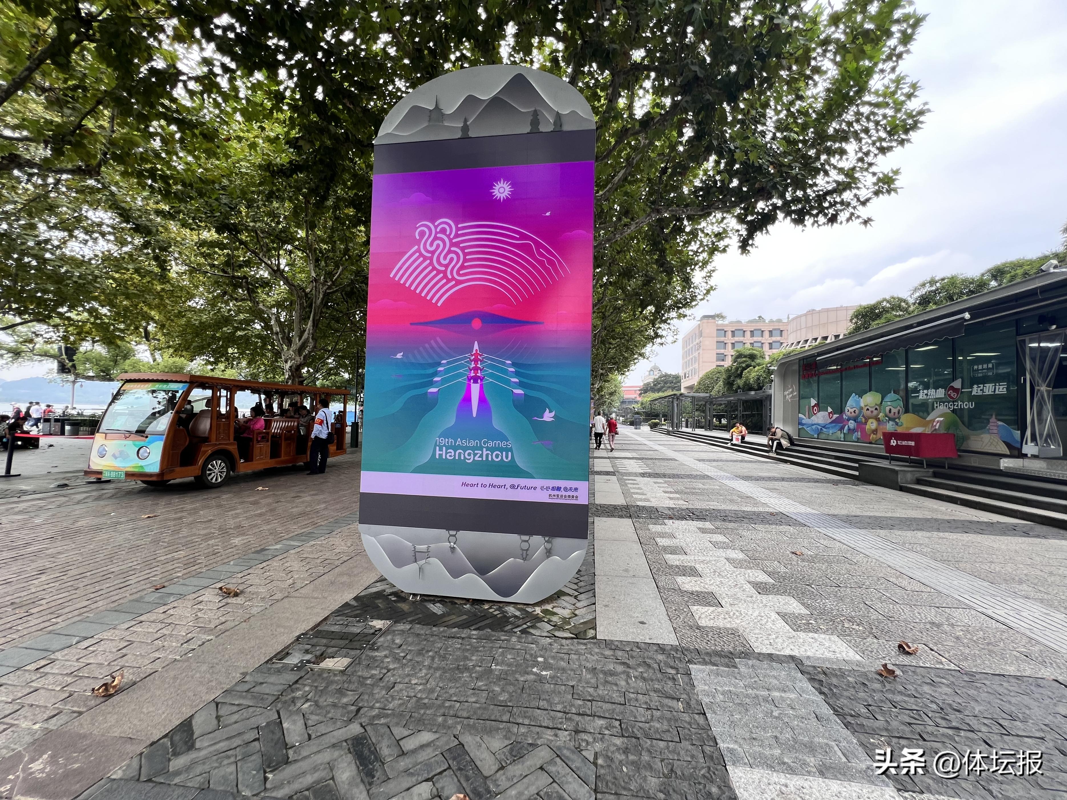西湖邊,3D魚缸轉換成了亞運宣傳海報