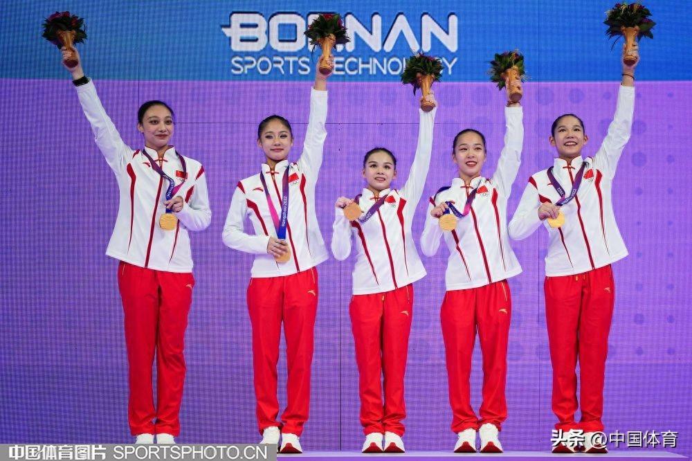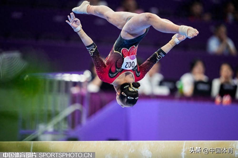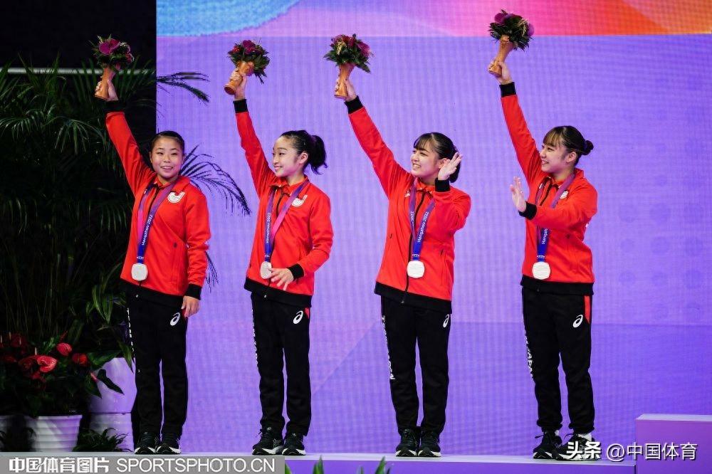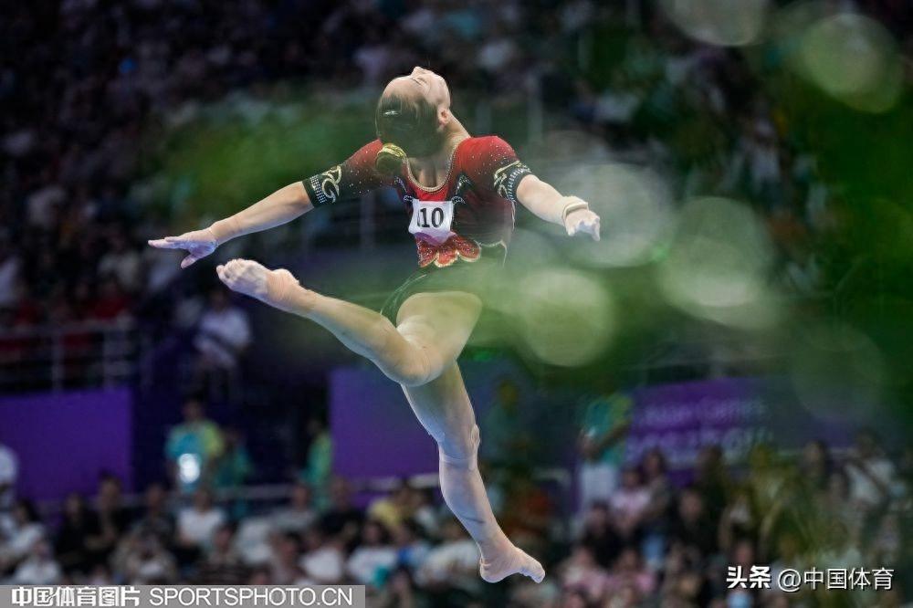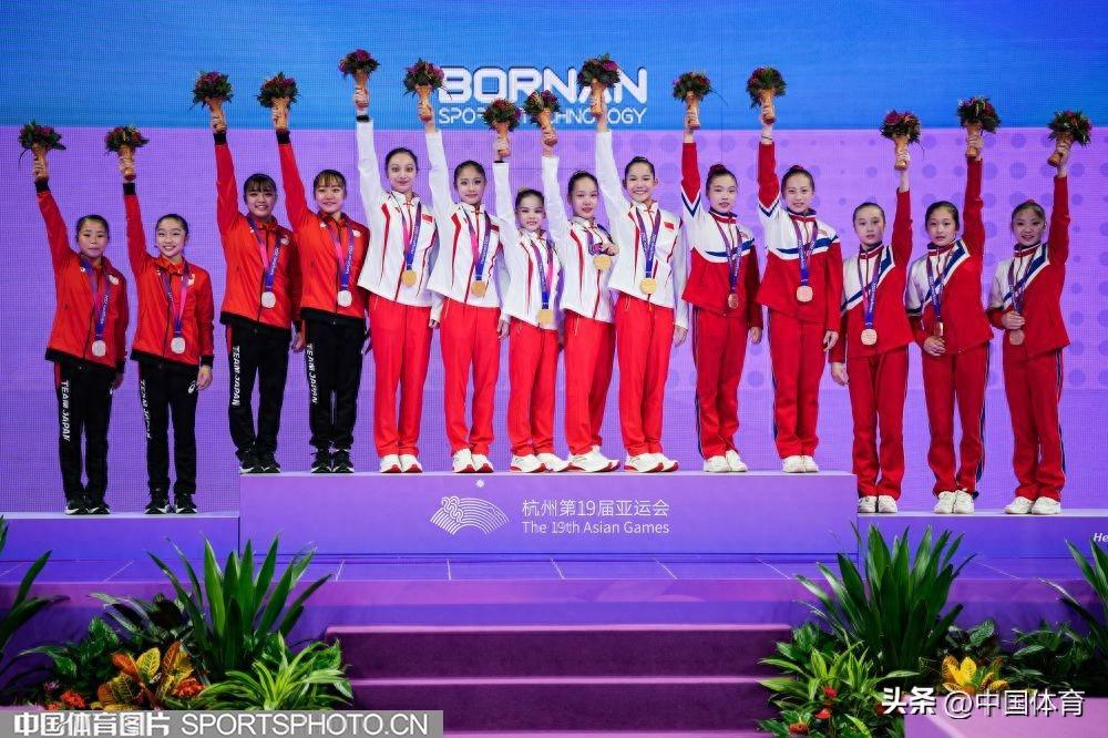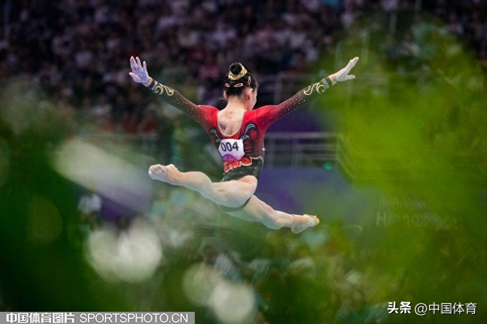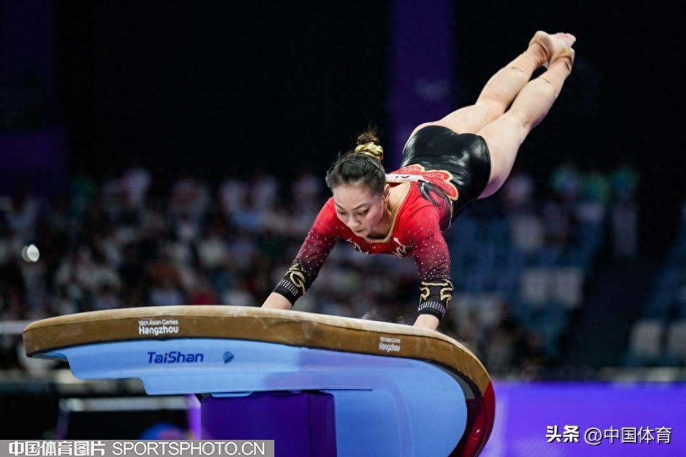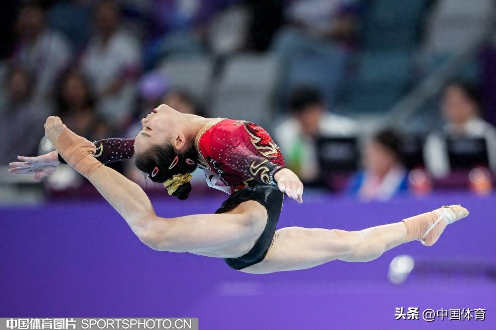 中國體育訊 9月25日晚,在杭州亞運會體操女子團體決賽中,由左彤、章瑾、張欣怡、虞琳敏、唐茜婧組成的中國隊,以總分161.896分奪得金牌,豪取亞運會體操女團十三連冠。日本隊和朝鮮隊分別奪得銀牌和銅牌,成績分別爲157.229分和156.829分。(中國體育圖片 魏徵 攝)