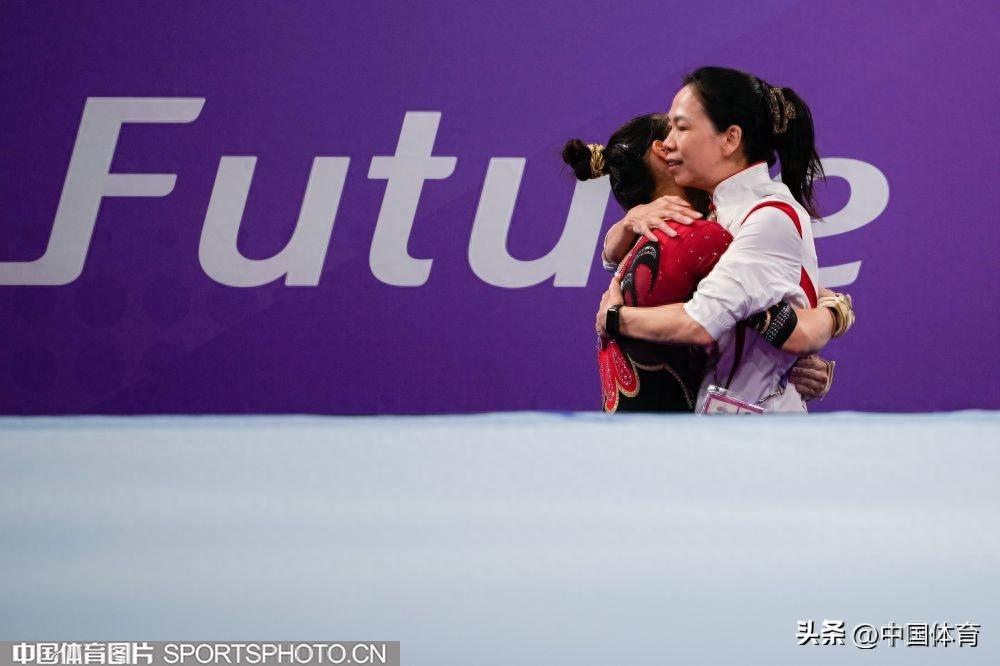 唐茜靖(左)與教練擁抱