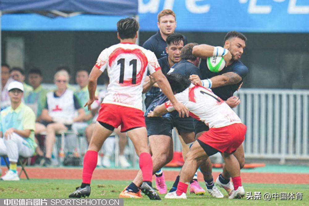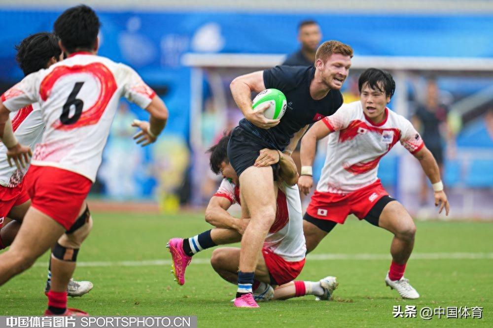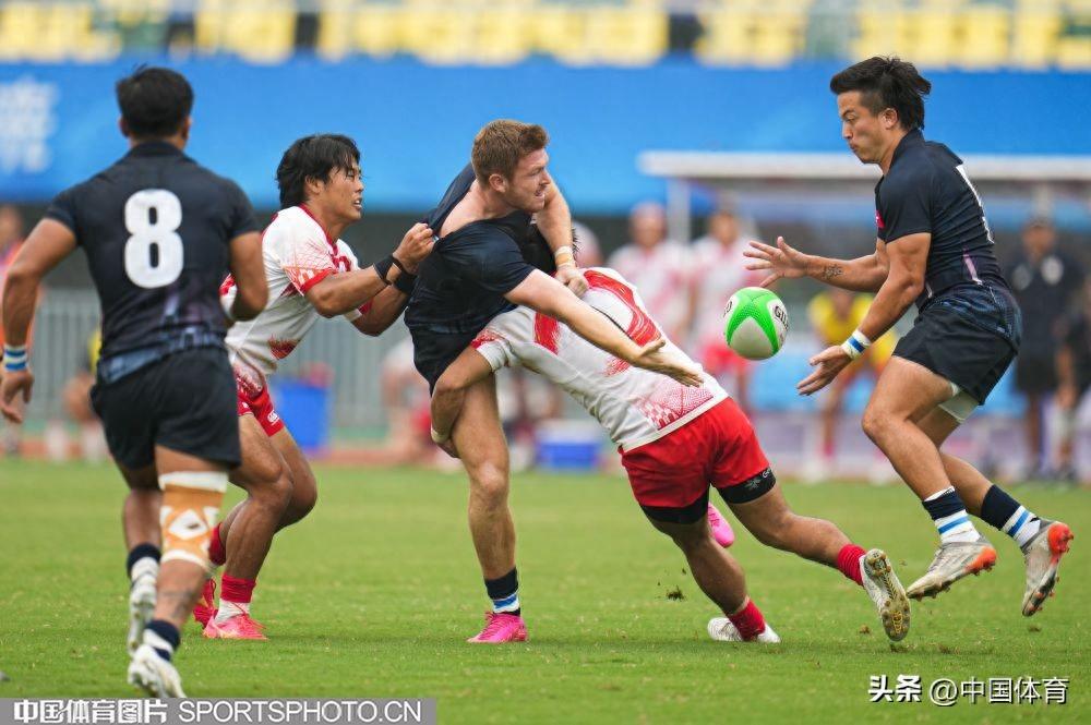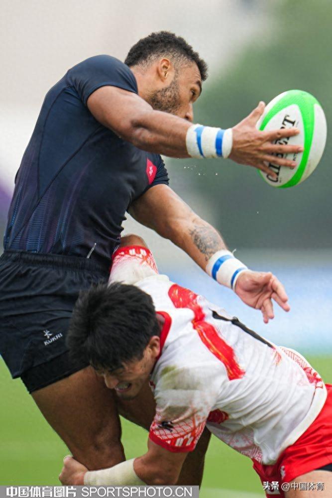 中國體育訊 9月26日,杭州亞運會七人制橄欖球男子半決賽在杭州師範大學體育場舉行。中國香港隊以12比7戰勝日本隊,成功晉級決賽。圖爲比賽場景。(中國體育圖片 倪敏哲 攝)