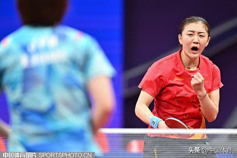 中國體育訊 9月26日,杭州亞運會乒乓球女團決賽打響。由孫穎莎、陳夢、王曼昱組成的中國隊以大比分3比0戰勝日本隊,奪得金牌。具體戰績爲:孫穎莎3比1早田希娜(11比6、12比10、8比11、11比9);陳夢3比2戰勝平野美宇(12比10、8比11、7比11、11比8、11比5);王曼昱3比1張本美和6比11、11比4、11比7、13比11。 (中國體育圖片 白宇 攝)