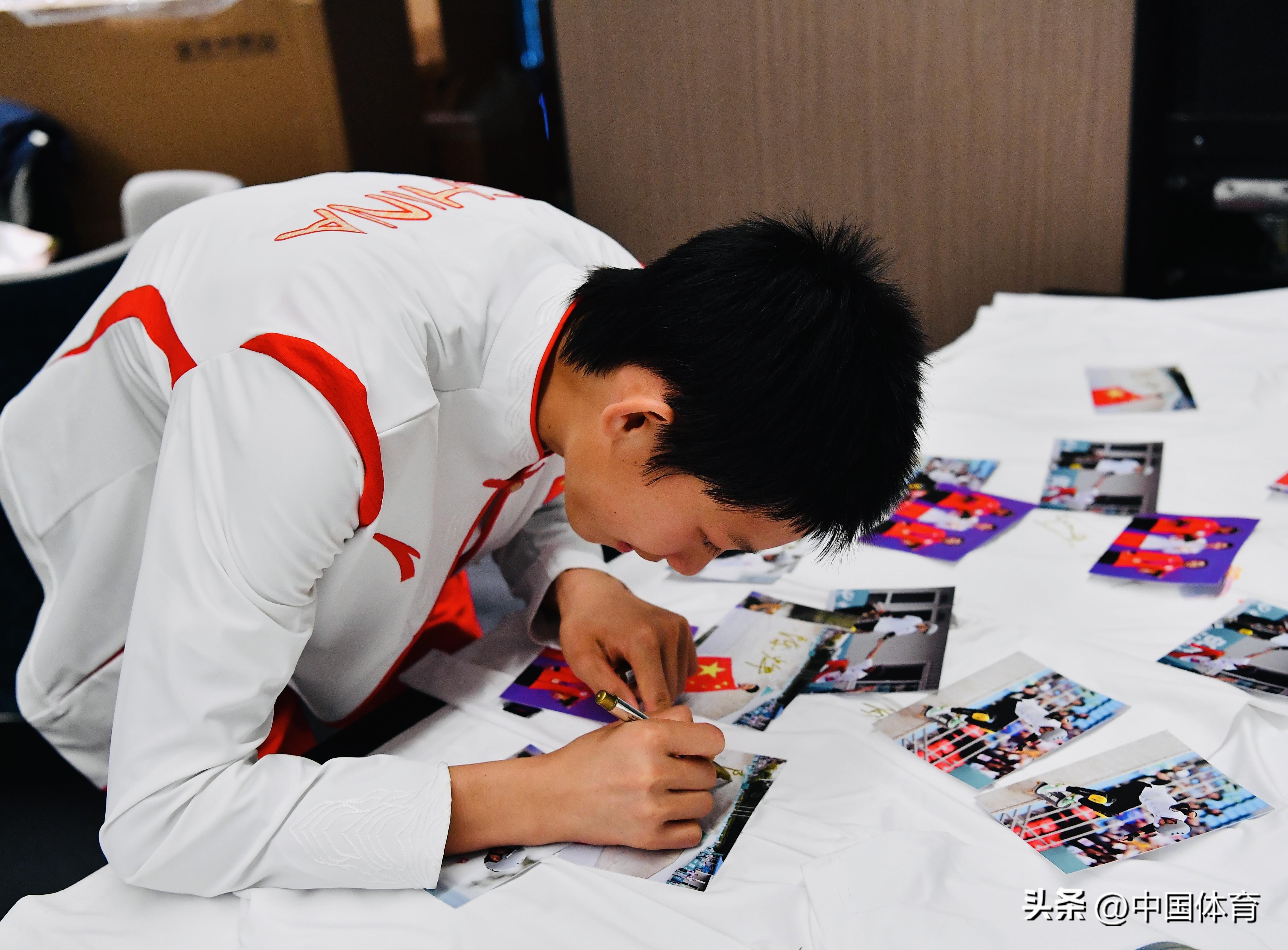 中國體育訊 9月26日,中國最年輕亞運冠軍陳燁做客中國體育前方演播室,與網友們分享奪冠感受。在25日進行的杭州亞運會滑板男子碗池決賽中,15歲的陳燁發揮出色勇得金牌。這枚金牌也是中國隊在滑板項目世界大賽(奧運會、亞運會、世錦賽)中奪得的首枚金牌,實現了歷史性的突破。陳燁也成爲中國代表團亞運歷史上最年輕的冠軍得主。(中國體育圖片 劉亞茹 攝)陳燁展示滑板陳燁與主持人合影留念陳燁爲網友簽名