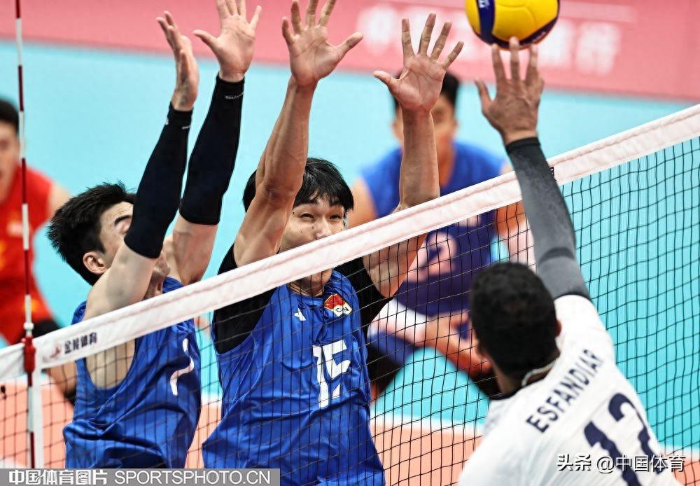 2023年9月26日,杭州亞運會男子排球決賽在臨平體育中心體育館舉行,中國隊1比3不敵伊朗隊獲得銀牌。四局比分25比19、14比25、22比25、24比26。(中國體育圖片 王憲民 攝)於垚辰(左二)、彭世坤攔網張景胤(左)攔網中國隊選手攔網俞元泰扣球於垚辰、彭世坤攔網中國隊慶祝得分(左起)於垚辰、李詠臻、張景胤攔網於垚辰、彭世坤攔網張景胤(左)扣球張景胤(右)扣球中國隊在頒獎儀式上伊朗隊在頒獎儀式上頒獎儀式現場