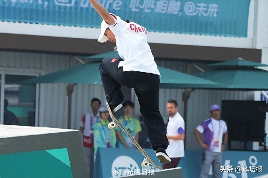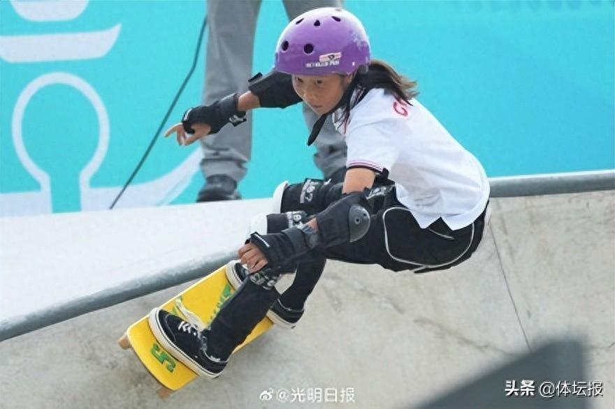 13歲的山東運動員崔宸曦作爲本屆亞運會中國代表團最年輕的選手,摘得亞運會街式滑板項目的歷史首金,也成爲了中國亞運歷史上最年輕的冠軍。幾輪比賽中,成功的向下反體滑動平衡,背向滑動平衡銜接腳尖反板等高難度動作的接連輸出讓她穩坐第一。