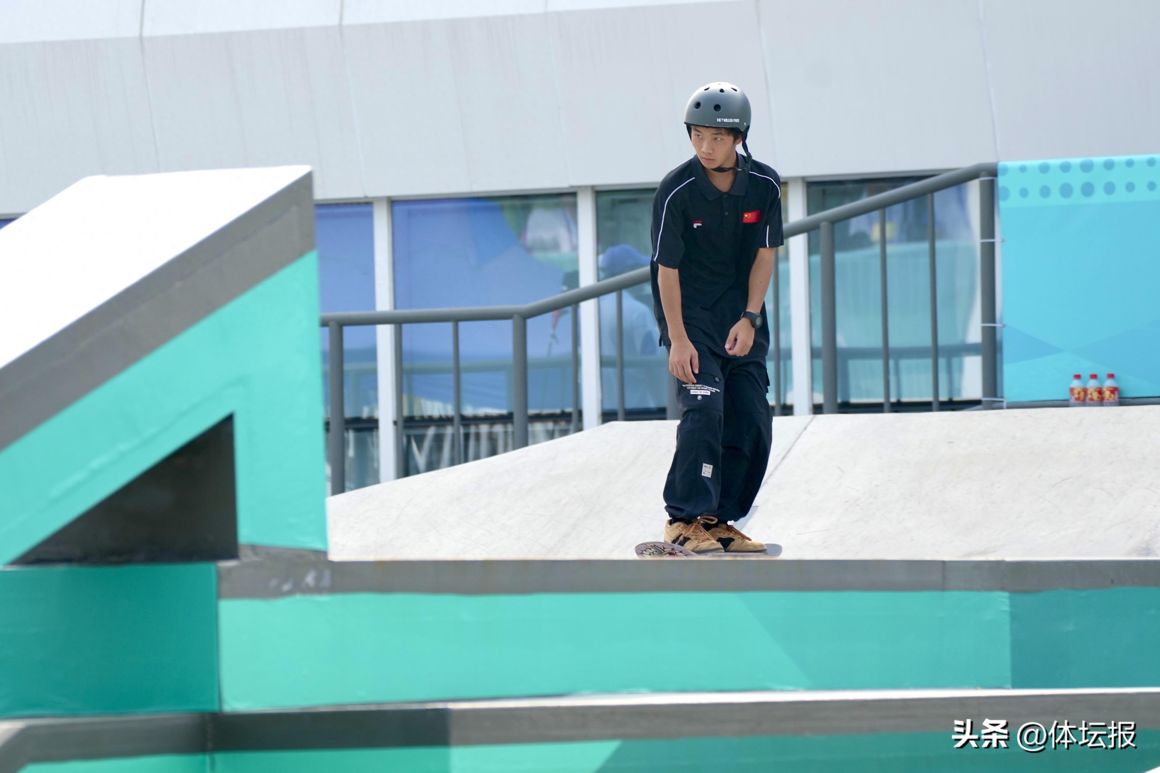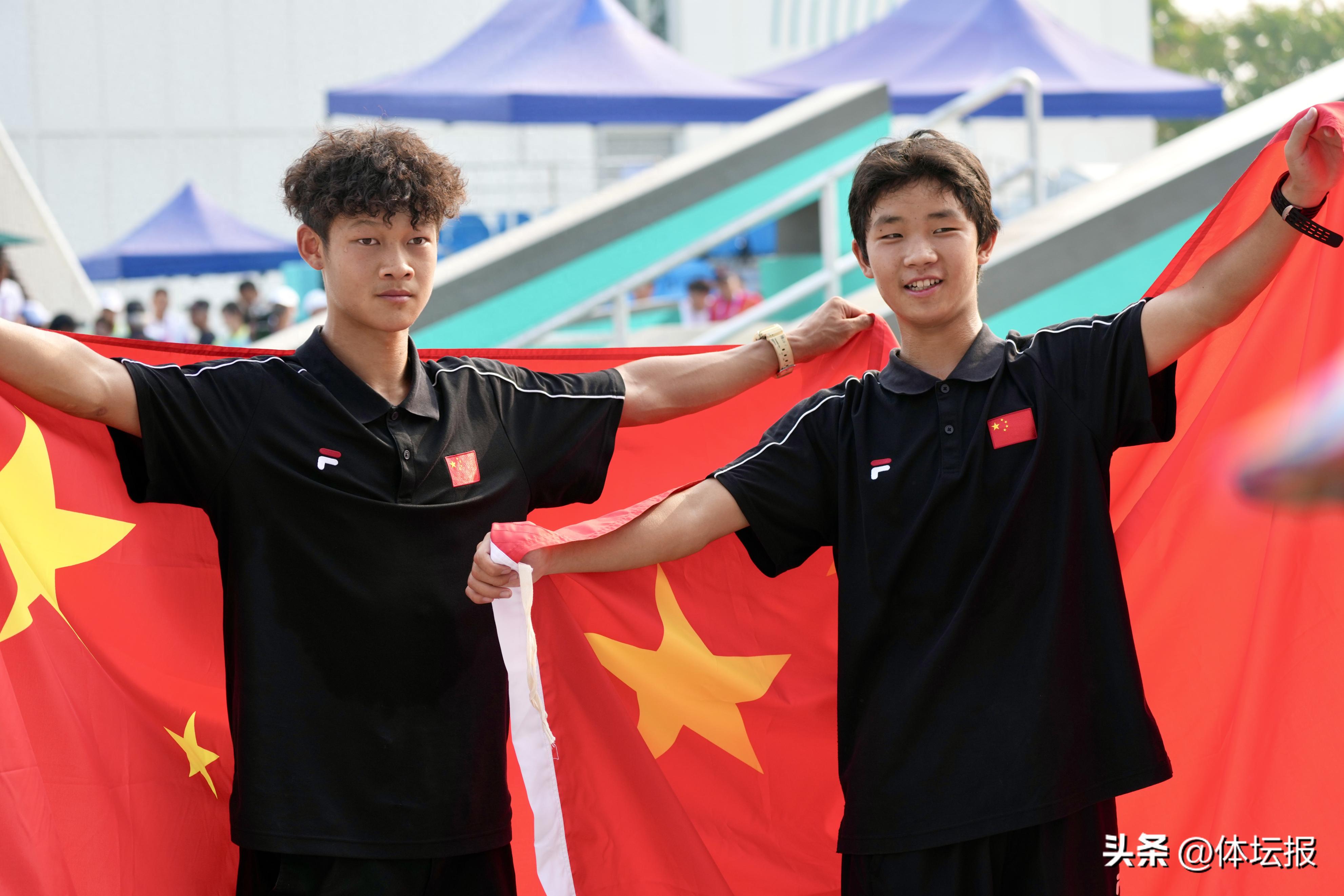 比賽最終結果出爐,喜獲金牌和銅牌的張傑和蘇建軍身披國旗,在觀衆的歡呼聲中在賽場上盡情地滑着滑板,繞場多圈。
