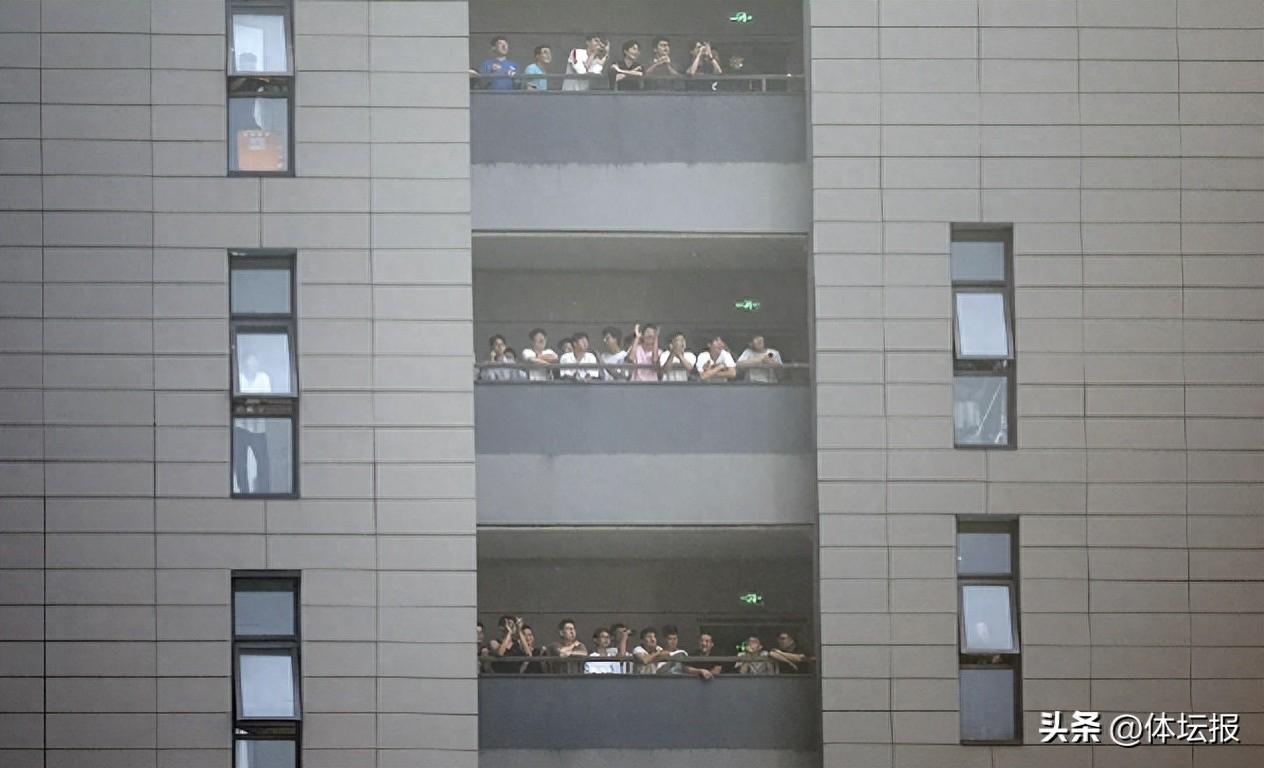 杭州亞運會橄欖球比賽在杭師大倉前校區舉辦,大學生在宿舍樓爲運動員加油(圖自 cfp)