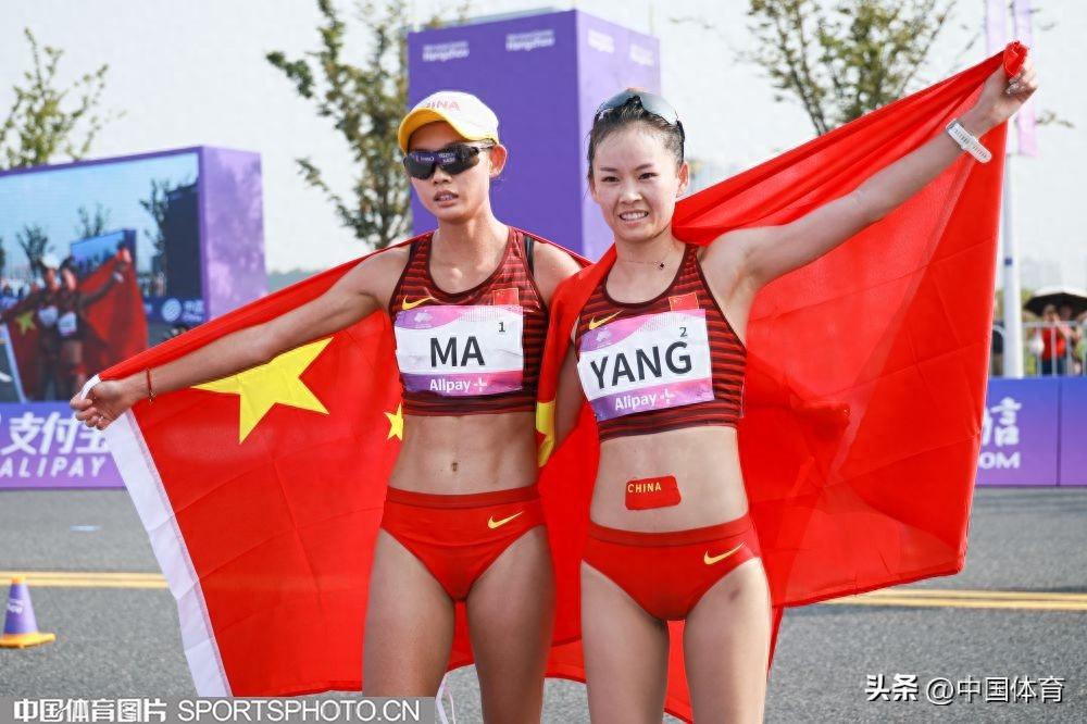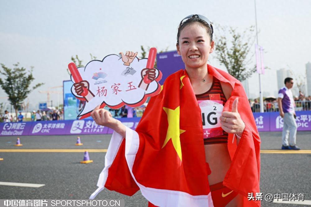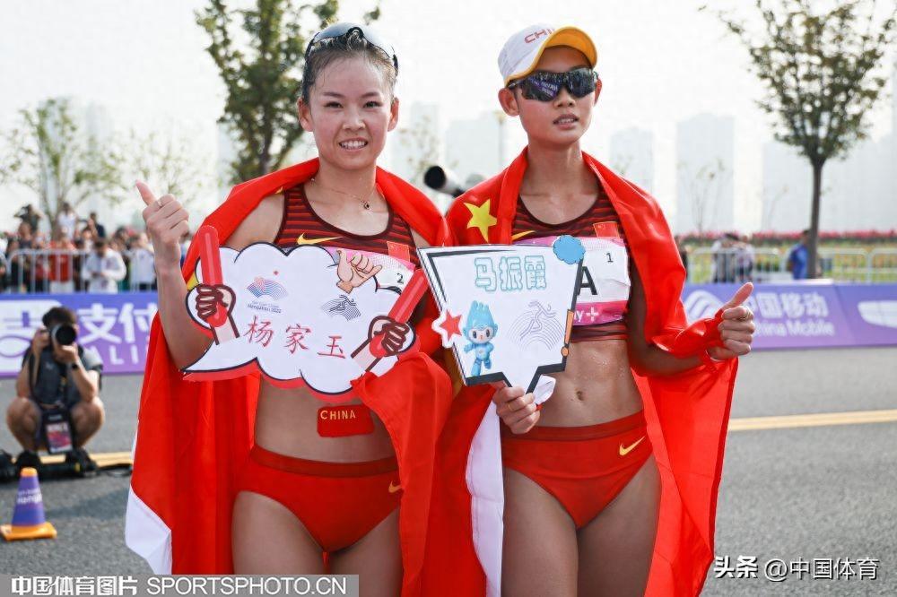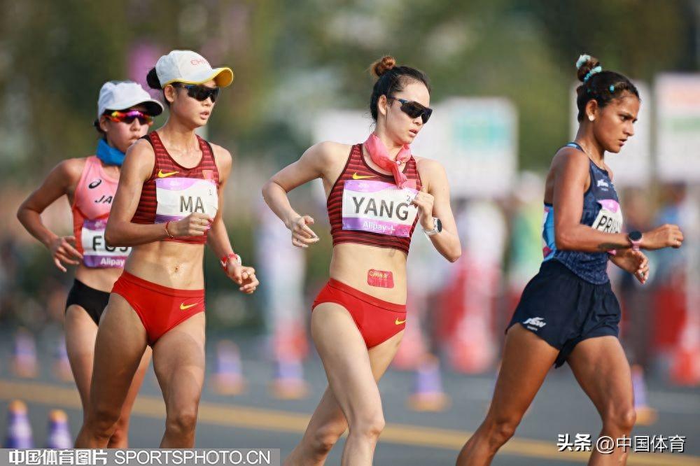 中國體育訊 9月29日,杭州亞運會女子20公里競走決賽在杭州智慧新天地沿江景觀帶進行。中國隊楊家玉以1小時30分03秒的成績獲得冠軍,馬振霞以1小時30分04秒收穫銀牌。日本選手藤井菜菜子以1小時33分49秒獲得銅牌。(中國體育圖片 鹿麟 攝)