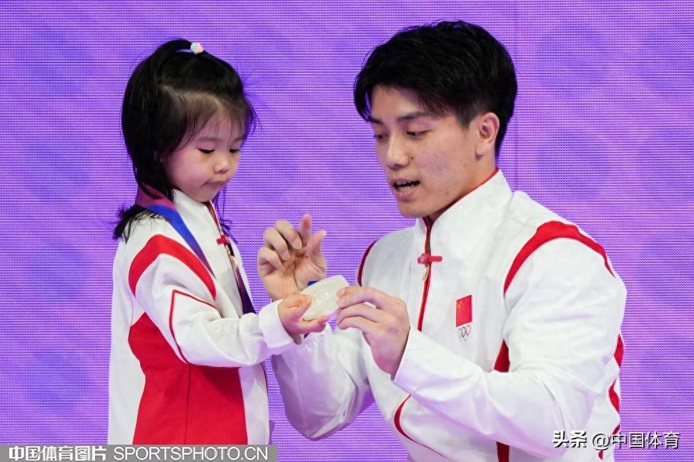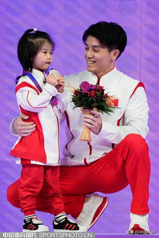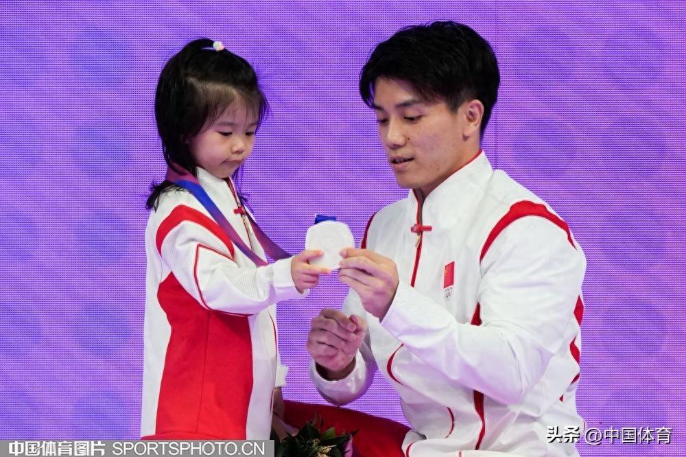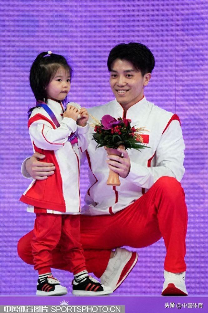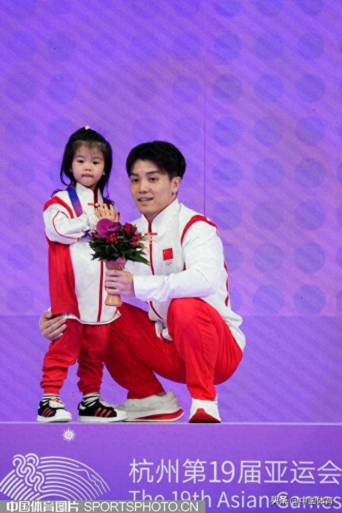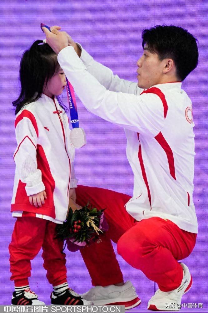 中國體育訊 9月29日,杭州亞運會體操比賽落下帷幕。收官日進行的男子單槓決賽中,28歲的中國老將林超攀斬獲一枚寶貴的銀牌。頒獎儀式結束後,林超攀把獎牌頒給了這幾天一直在賽場上爲自己加油的三歲女兒。中國體育記者也用相機記錄下了這溫情一幕。(中國體育圖片 魏徵 攝)