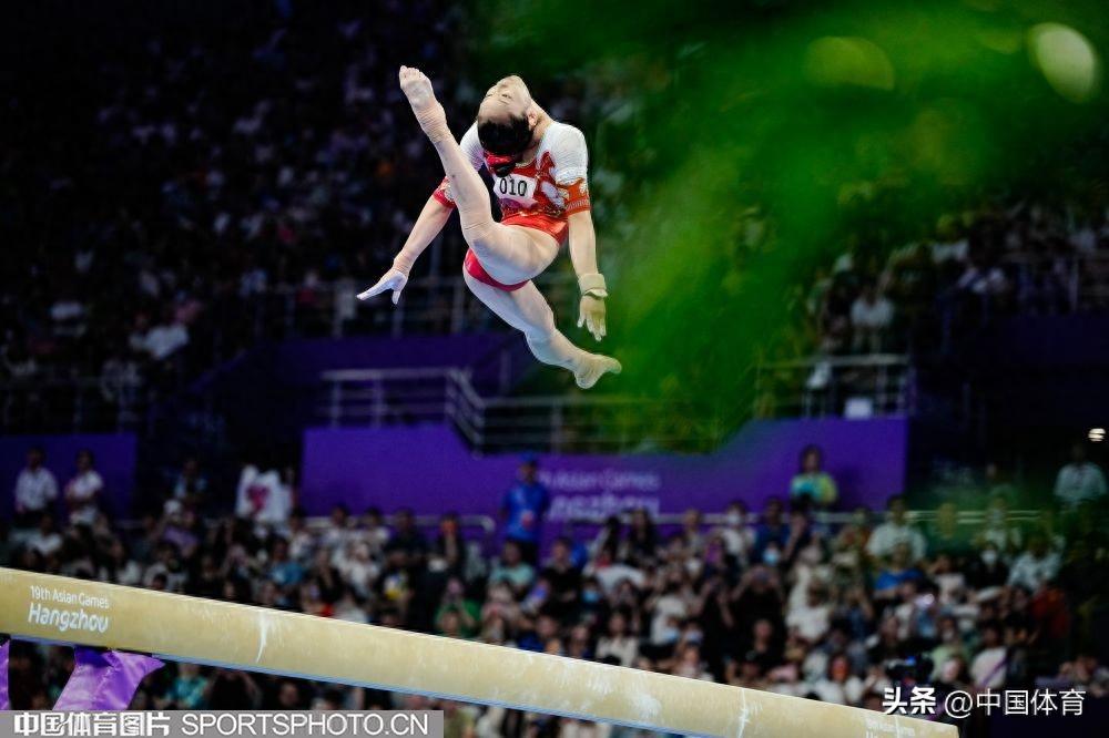 女子平衡木決賽中,中國選手唐茜靖以13.733分獲得銀牌,章瑾以13.266分獲得第四名。冠軍被日本選手岡村真以13.966分摘得,中國臺北選手獲得銅牌。