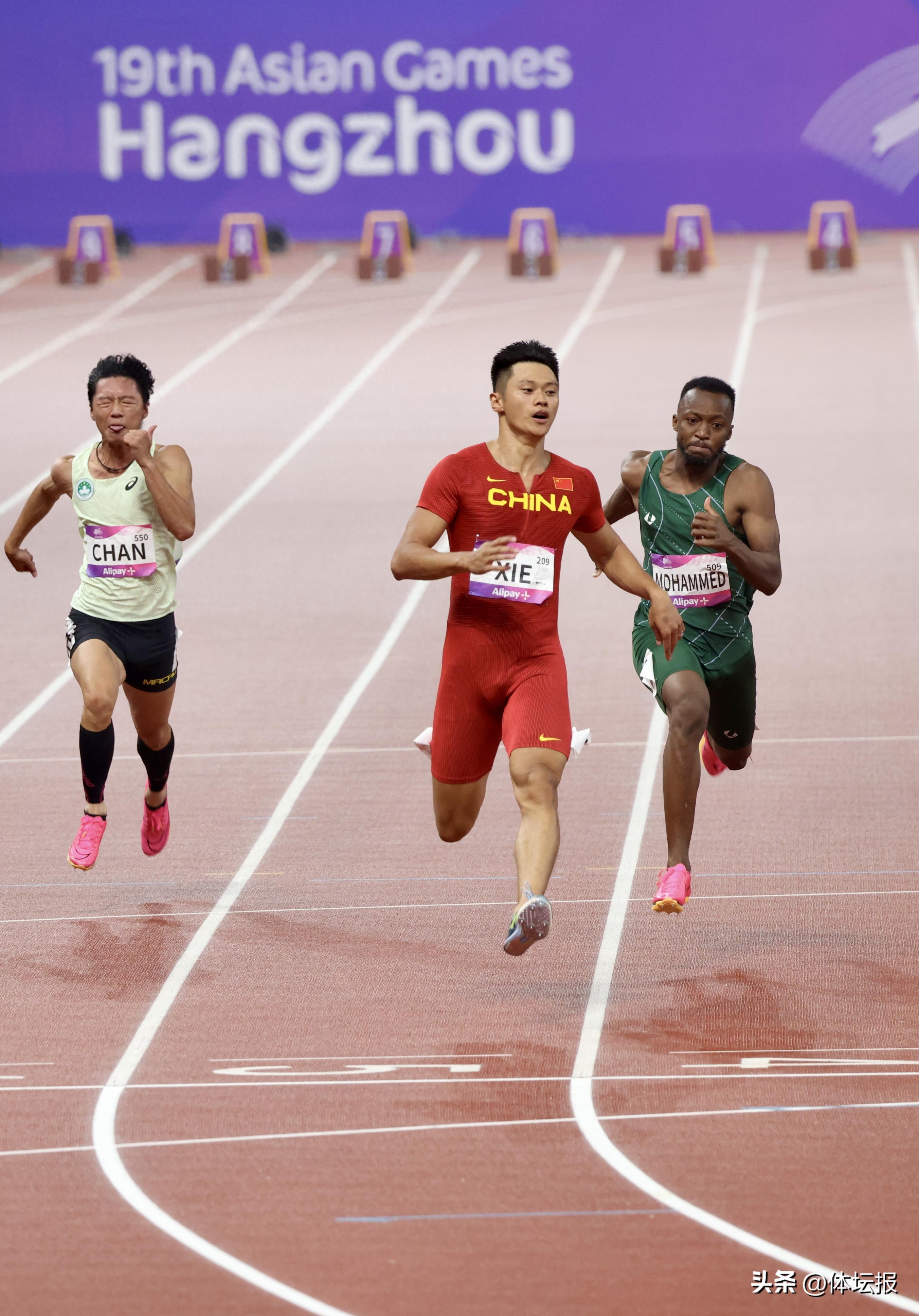 剛過30歲生日的謝震業是亞運賽場上的老兵。在上一屆雅加達亞運會,謝震業含淚退賽,留下了太多遺憾。爲了在本次亞運會有更好表現,謝震業放棄了主項200米,全力備戰100米和4x100接力,撐起中國男子短跑大旗。