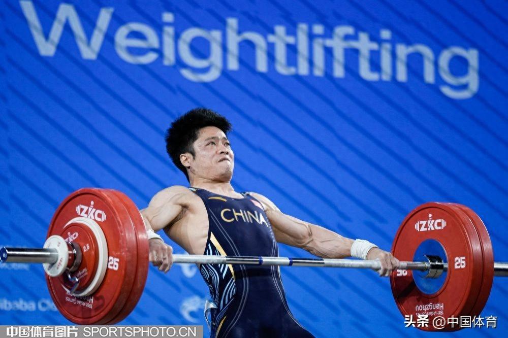中國體育訊 10月1日,杭州亞運會舉重比賽進入第二個比賽日。在男子61公斤級比賽中,中國選手李發彬以抓舉143公斤,挺舉167公斤,總成績310公斤,奪得中國舉重隊在本屆亞運會上的首枚金牌,並打破了抓舉和總成績亞運會紀錄。朝鮮選手樸明近和金忠國以總成績307公斤和298公斤分獲亞軍和季軍。另一位中國選手丁紅傑在抓舉環節疑似肘部受傷未能完賽。(中國體育圖片 魏徵 攝)