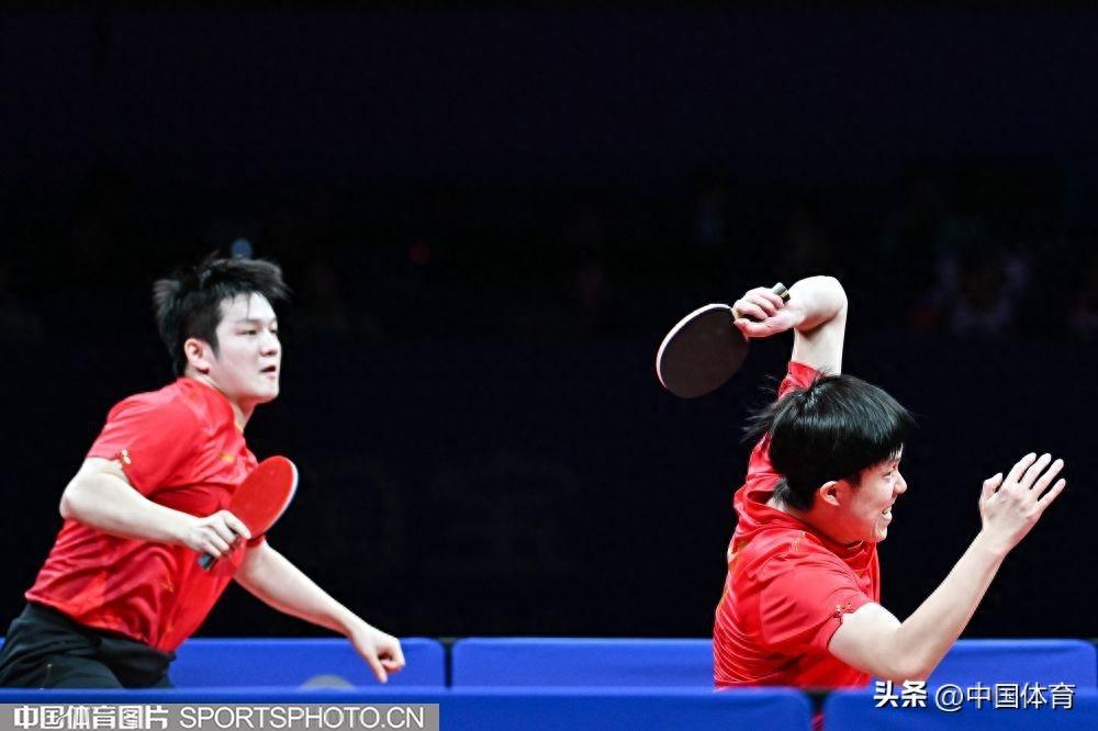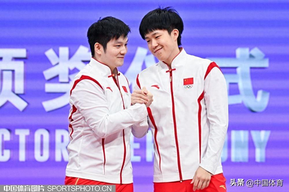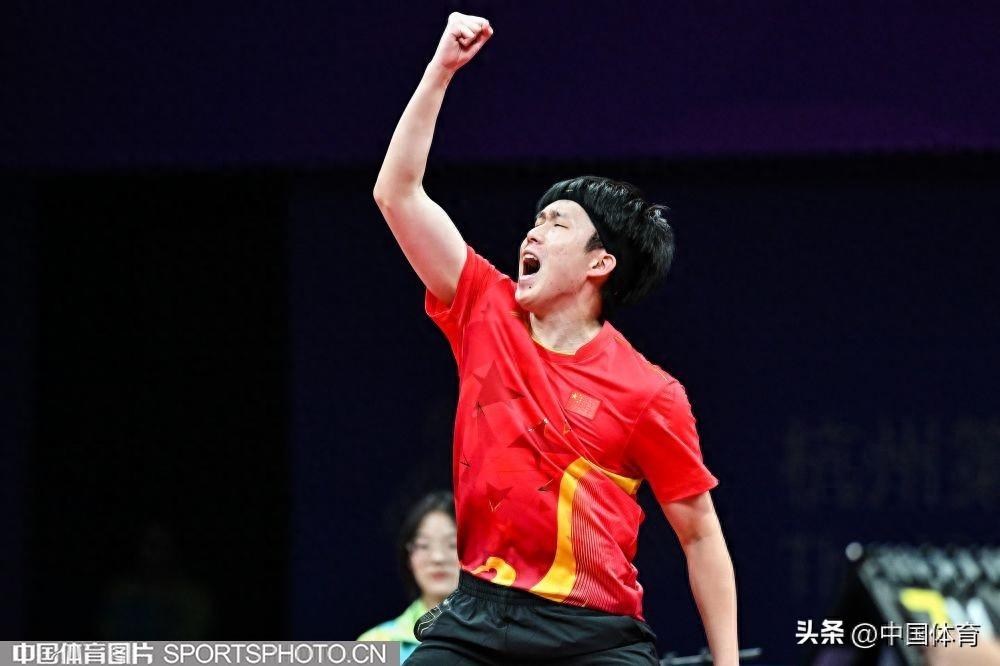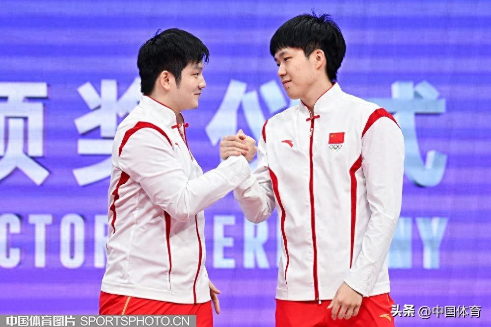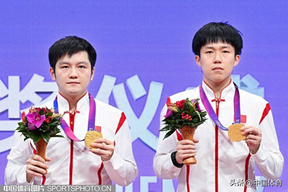 中國體育訊 10月1日晚,在杭州亞運會乒乓球男子雙打決賽中,中國組合樊振東/王楚欽以4比0橫掃韓國組合張禹珍/林鐘勳,獲得金牌。四局比分爲11比6、11比8、11比7和11比3。(中國體育圖片 白宇 攝)