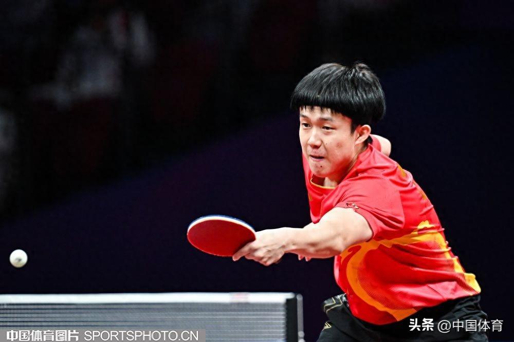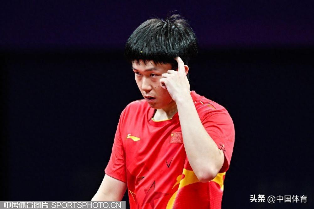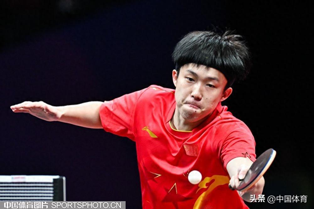 王楚欽(左)、教練王皓(中)、樊振東慶祝勝利