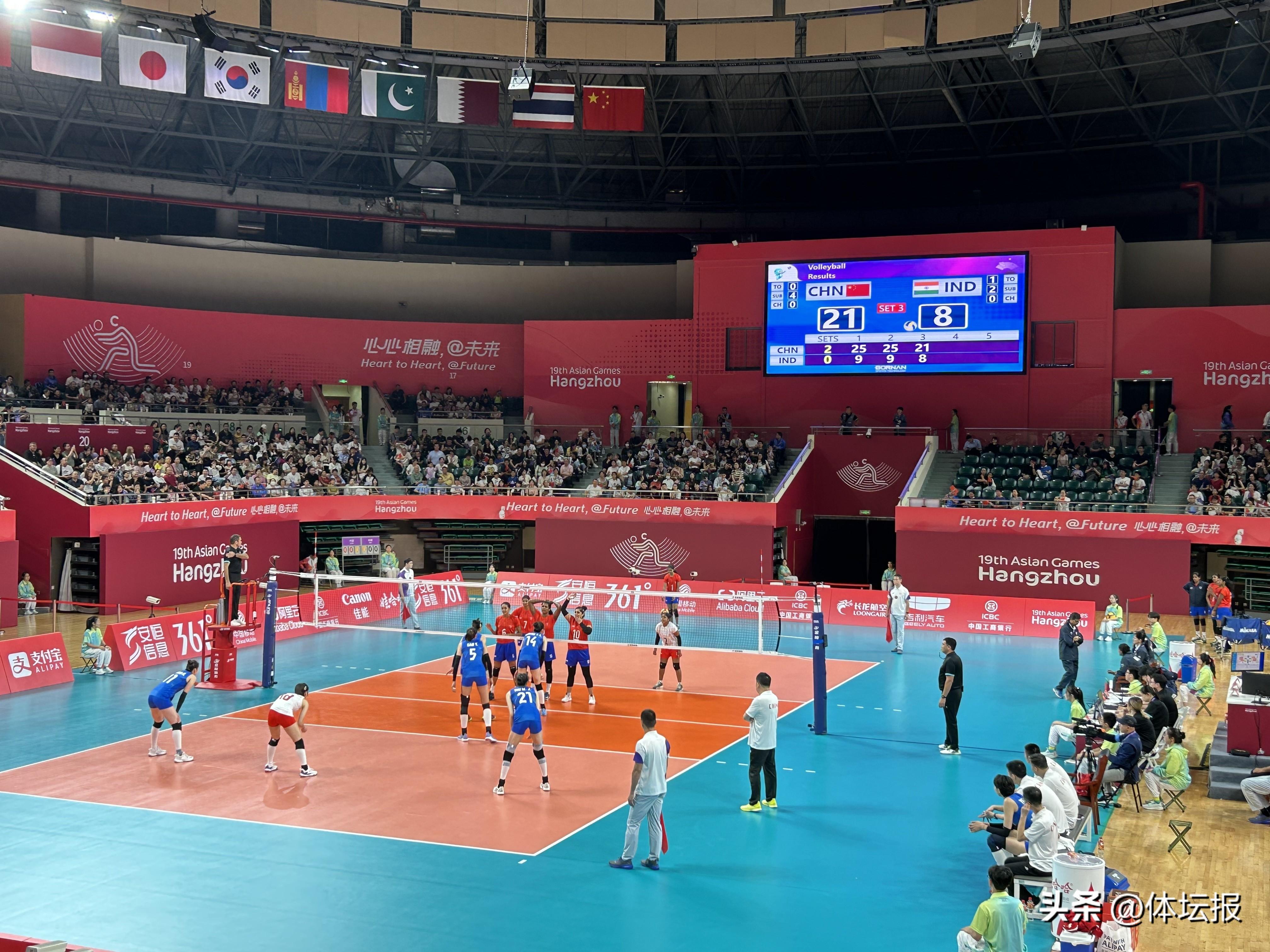 今天恰逢國慶節,備受國人關注的中國女排在德清體育中心體育館迎來了本屆亞運會的首個對手——印度女排。最終,女排姑娘們以3∶0取勝,贏得開門紅。