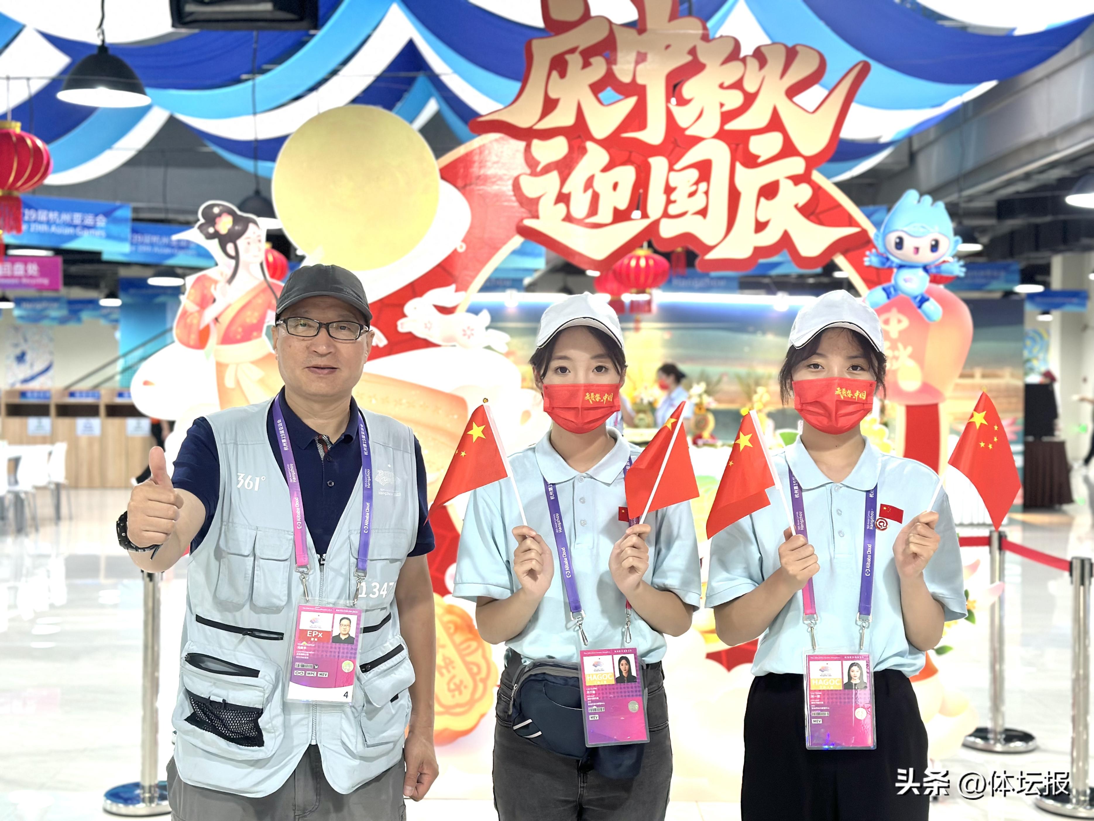 亞運村裏,同樣風景獨好。運動員村在國慶當天開展了民樂專場演出等一系列活動,讓大家體驗了一把中國民俗風。來自印度的TamerQaquq跟着音樂節拍吹起了口哨。“我們過了一個特殊的節日,一場盛大的宴會。運動員不僅在這裏同場競技,互相交流,更重要的是體驗了中國的傳統文化。”在媒體村,剛下電梯,濃濃的國慶味就撲鼻而來,志願們的一句國慶快樂打開了記者們的一天。走進餐廳,歡度國慶的招牌格外引人注目,吸引不少媒體記者合影留念。