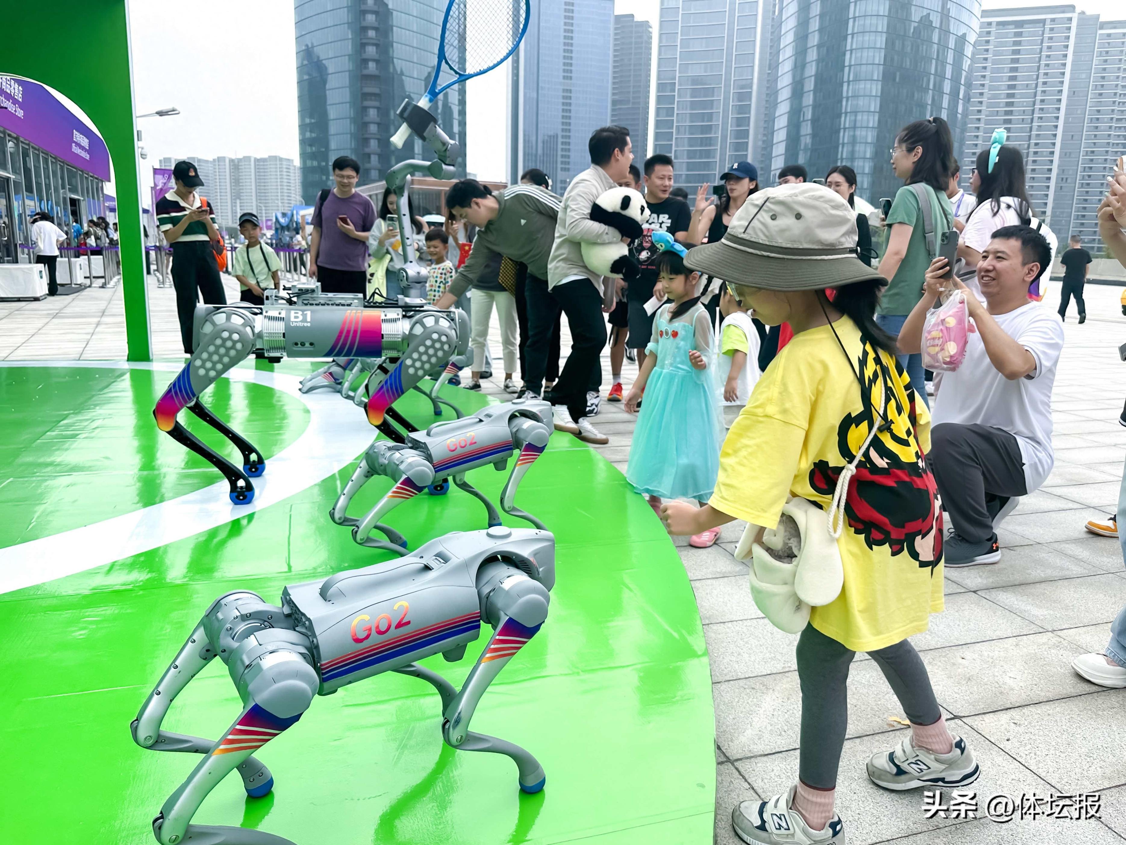 據瞭解,爲助力杭州亞運會,宇樹機器小狗軍團全力出動,50餘臺機器狗遍佈亞運村、“大小蓮花”等多個亞運場館,不僅幫忙運輸器材,還在賽前進行羣舞表演、中秋節送月餅,並在媒體中心做語音播報,在羽毛球場館,狗狗們爲熱身的運動員傳送羽毛球,奧運冠軍陳雨菲親自操作,與機器狗耍寶互動,玩得不亦樂乎!