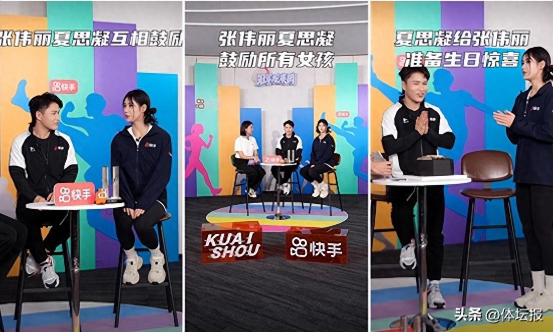 在直播間,張偉麗剖析自己“半i半e”的性格,談到“在自己喜愛的領域發光發熱”的女性力量,回應外界對於性別和職業的標籤,讓老鐵們發出“穿上戰衣是猛虎,融入生活是女神”的稱讚。夏思凝則暢談自己面對傷病的心路歷程,分享從舞蹈轉戰田徑的經歷,並大方地爲網友帶來一段舞蹈表演。