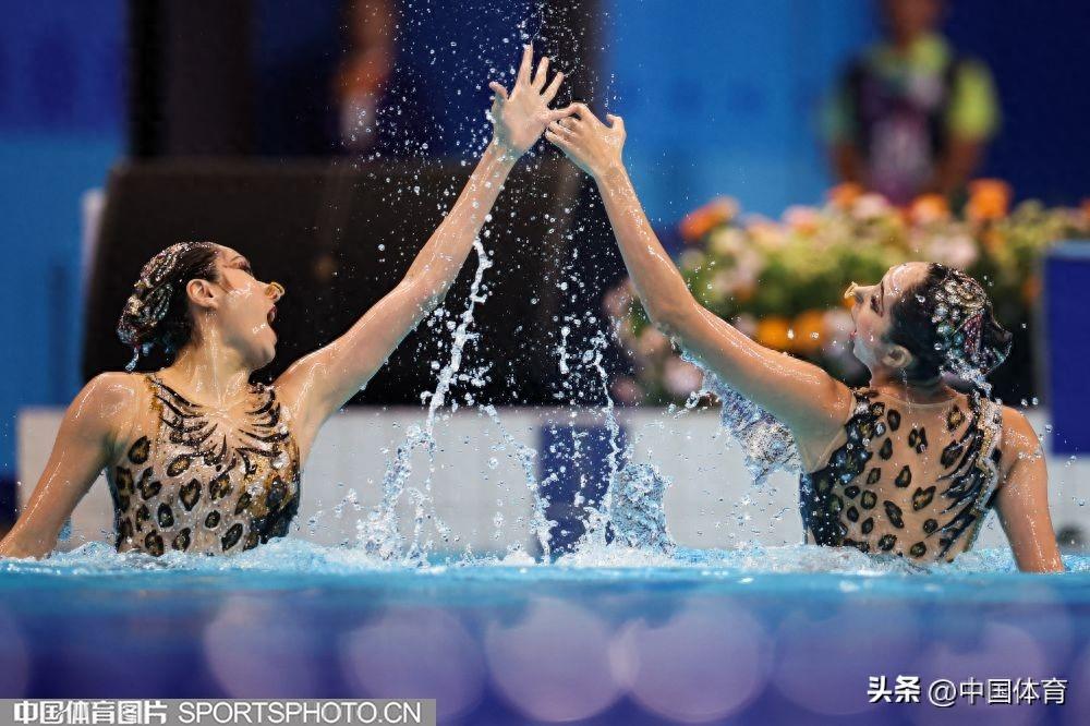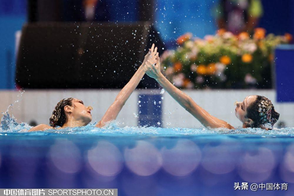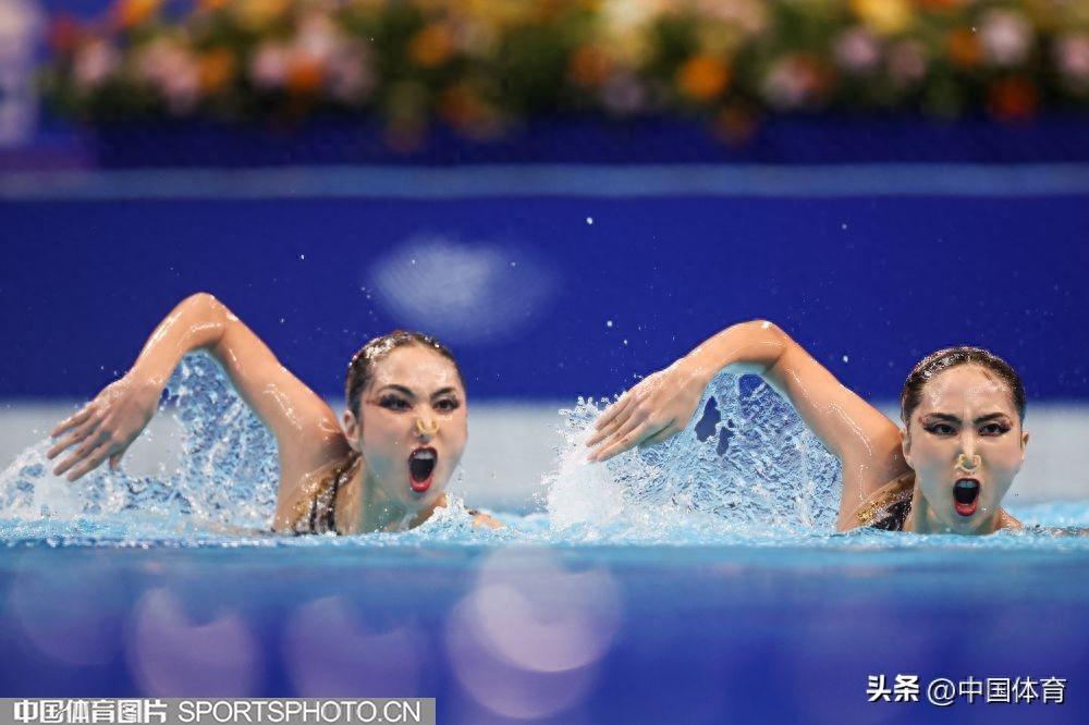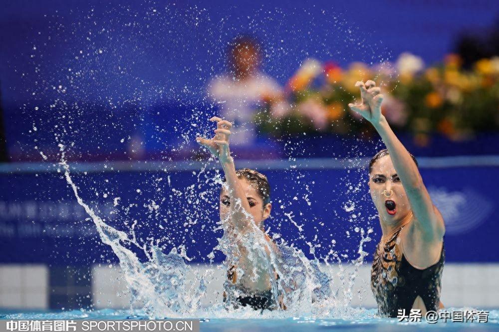 中國體育訊 10月7日,杭州亞運會花樣游泳女子雙人自由自選的比賽,在杭州奧體中心遊泳館舉行。中國組合王柳懿/王芊懿獲得266.5767分,加上昨天的雙人技術自選成績,以總分526.8620的成績,獲得金牌。日本組合和哈薩克斯坦組合分獲銀牌和銅牌。圖爲王柳懿/王芊懿在比賽中。(中國體育圖片 安靈均 攝)