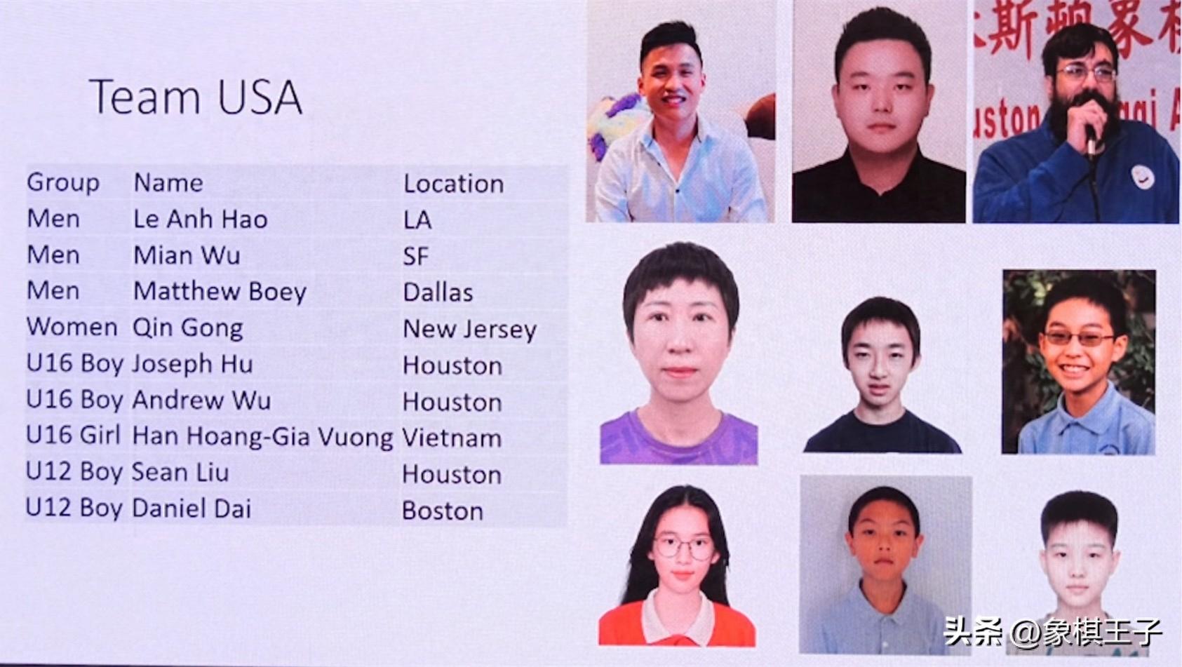 他透露,東道主美國象棋隊,將有三位成人男子,一位女子和五位少年棋手參加,這是美國在歷屆象棋世錦賽上派出的人數最多陣容。