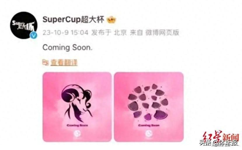 同時,名爲“Super Cup超大杯”的官方微博賬號也發佈了兩張邁阿密國際球衣底色的圖片,一張爲“山羊”(GOAT),另外一張爲“貝殼”(貝克漢姆),並配文:“Coming Soon”(馬上就來)。當即就有媒體表示,這是主辦方在發圖暗示梅西即將再次來華。