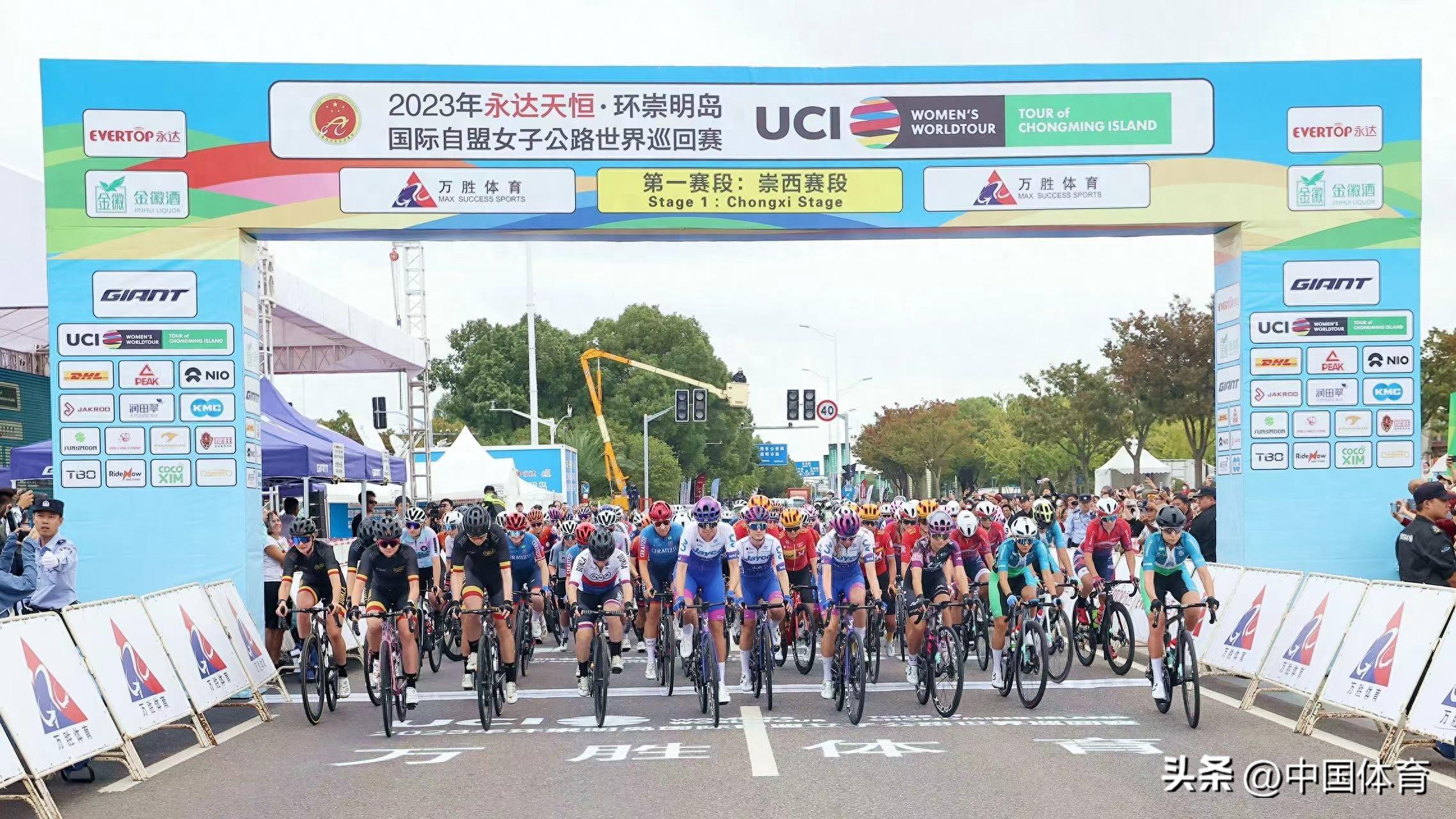 11時40分,2023年永達天恆·環崇明島國際自盟女子公路世界巡迴賽第一賽段崇西賽段準時鳴槍開賽。根據賽段設置,第一賽段分別在46.2公里和83.2公里處設置了兩個衝刺點,在16.3公里處設置了一個4級爬坡點。