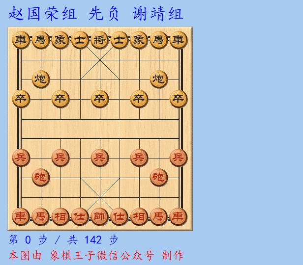 冠亞軍決賽的焦點對決,慢棋成平,加賽快棋,趙國榮組執紅,下成紅車馬兵仕相全對黑車炮雙士。