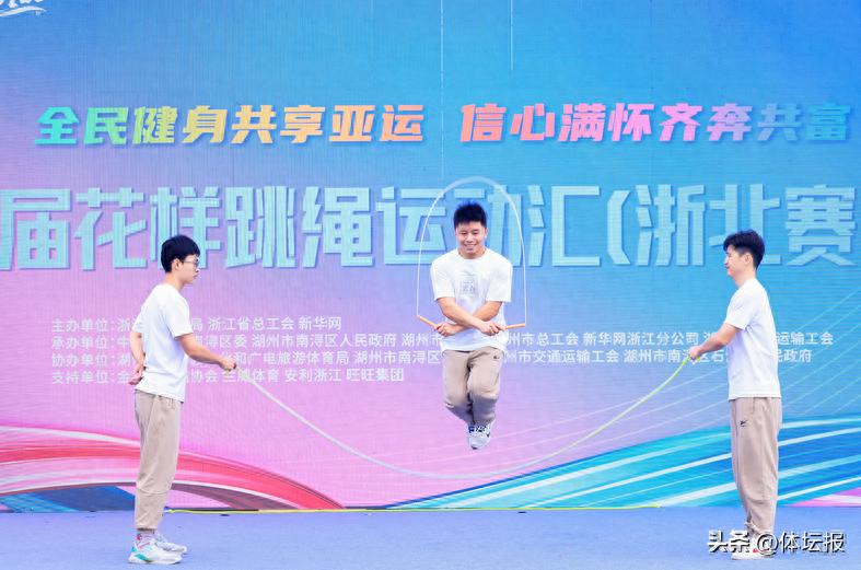 記者注意到,現場除了專業跳繩比賽,還有十餘個定向賽遊戲。當天,由浙江省交通運輸工會、湖州市總工會、湖州市交通運輸工會及湖州市南潯區總工會共同組織的200多名定向賽“玩家”,手持通關文牒,在八字跳長繩、魔力扭扭樂、桌面冰壺球等遊戲打卡點裏自由穿梭;貨車司機、快遞員、外賣員等新業態勞動者現場挑戰,展現個人技能以及團隊協作能力。