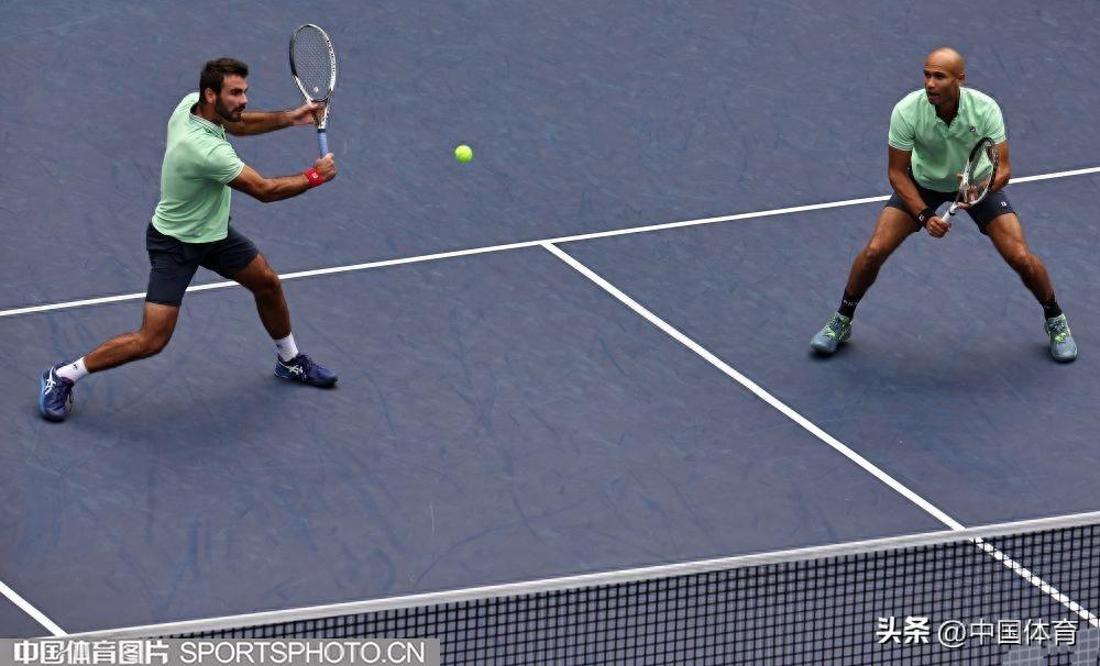 中國體育訊 10月14日,職業網球聯合會(ATP)世界巡迴賽上海大師賽男子雙打半決賽,在上海旗忠網球中心舉行。羅翰·波帕納/馬修·艾伯登2比0擊敗薩迪奧·杜姆比亞/法比安·勒布爾,晉級決賽。(中國體育圖片 王憲民 攝)