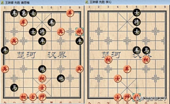 當中雙車炮兵四子進攻,贏下小仙女唐思楠,車炮仕相全對車馬雙士,力取00後李沁。