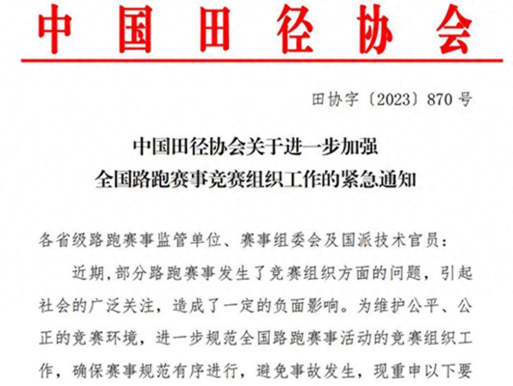 另外,還強調如遇突發事件,必須要在30分鐘內,口頭上報,具體上報機構包括當地主管部門或者是中國田徑協會。