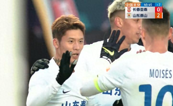 這還沒完,上半場傷停補時階段,亞泰後防送大禮,克雷桑橫傳,陳蒲打門被撲,結果好巧不巧,皮球反彈到畢津浩身上,意外折射入網,這樣一來山東泰山客場3比0領先長春亞泰。