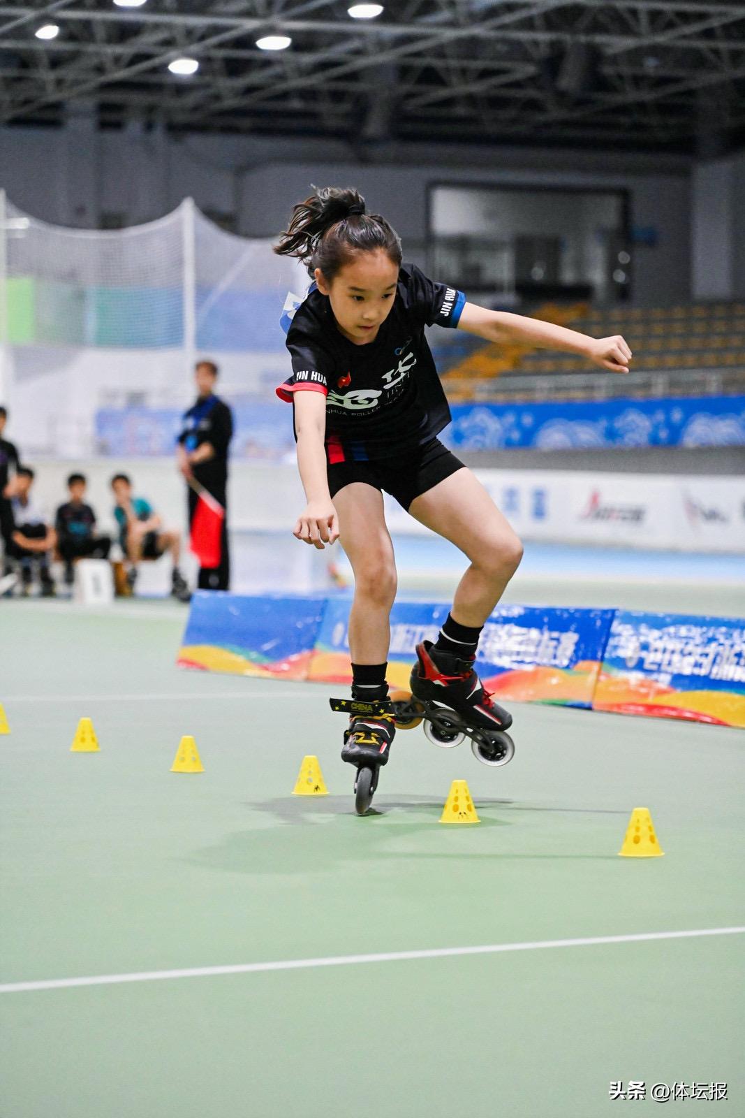 相比於速度輪滑的“激情澎湃”,“花式繞樁”搭配着音樂和編排好的動作,帶給觀衆不一樣的觀賞體驗。在花式繞樁少年乙組比賽中,來自金華高鎮小學的三年級學生朱芷萱獲得冠軍,面對“冠軍榮耀”,9歲孩子的臉上雲淡風輕,“練了很多年了,已經拿了幾次冠軍了,所以不會太激動。”朱芷萱說,反而練會一個個“高難度”動作讓她更有成就感。“比如,‘天鵝蟹‘我練了6個月才練好,現在已經能熟練運用。”說着,朱芷萱還現場展示了起來。