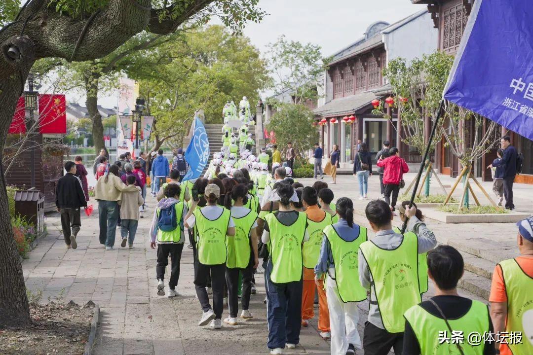 “行走千年大運河 踏上萬裏健康路”。10月28日,2023年“行走大運河”全民健身健步走活動在水晶晶的南潯古鎮舉辦。隨着開幕式的啓動,整裝待發的600餘名市民從絲綢碼頭出發,沿南潯古鎮徒步3公里。