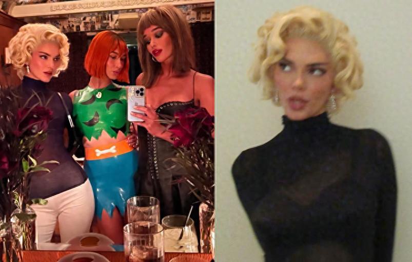 不過“肯豆”這次萬聖節造型,還是讓人眼前一亮,模仿談不上,但致敬意味很濃,淺金色捲髮,立體優越的五官,嫵媚多姿的身材,化身夢露的詹娜好美好驚豔。