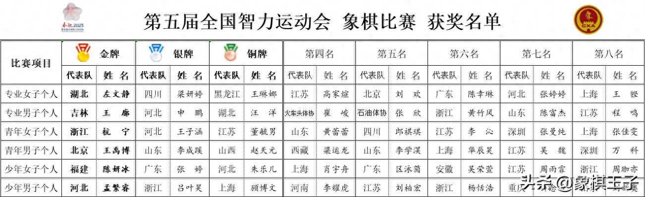 智運象棋盛會五日下來,浙江隊杭寧摘得首金,豔冠青年女子,開啓輝煌,湖北隊左文靜獲得第二金,拿下專業女子。