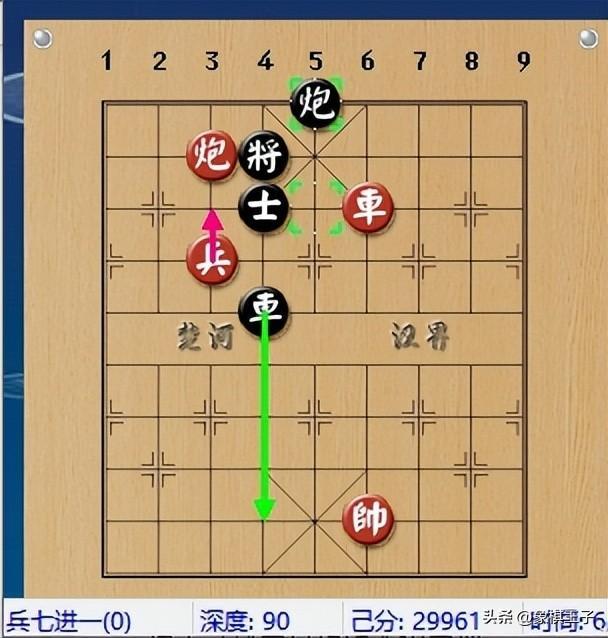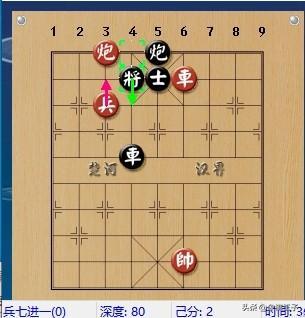 申鵬先車四進一,點了一步將,黑退將,紅這時再進兵,黑正好退士,黑老將下去了,紅沒了炮打士的棋,只得進炮沉底,欲送炮得士再殺。