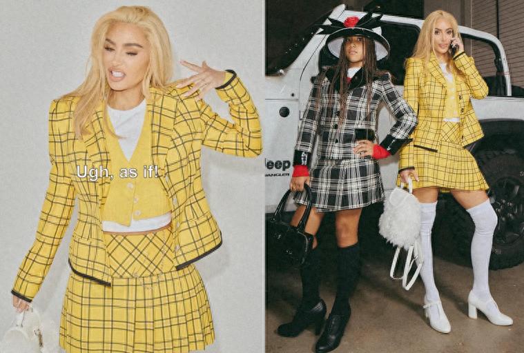 只見這對母女復刻美劇《獨領風騷》中的經典人物,現年43歲的金卡戴珊穿上一身少女感十足的黃色格子套裝,瞬間年輕了20歲,整個人看起來俏皮可愛,非常漂亮。